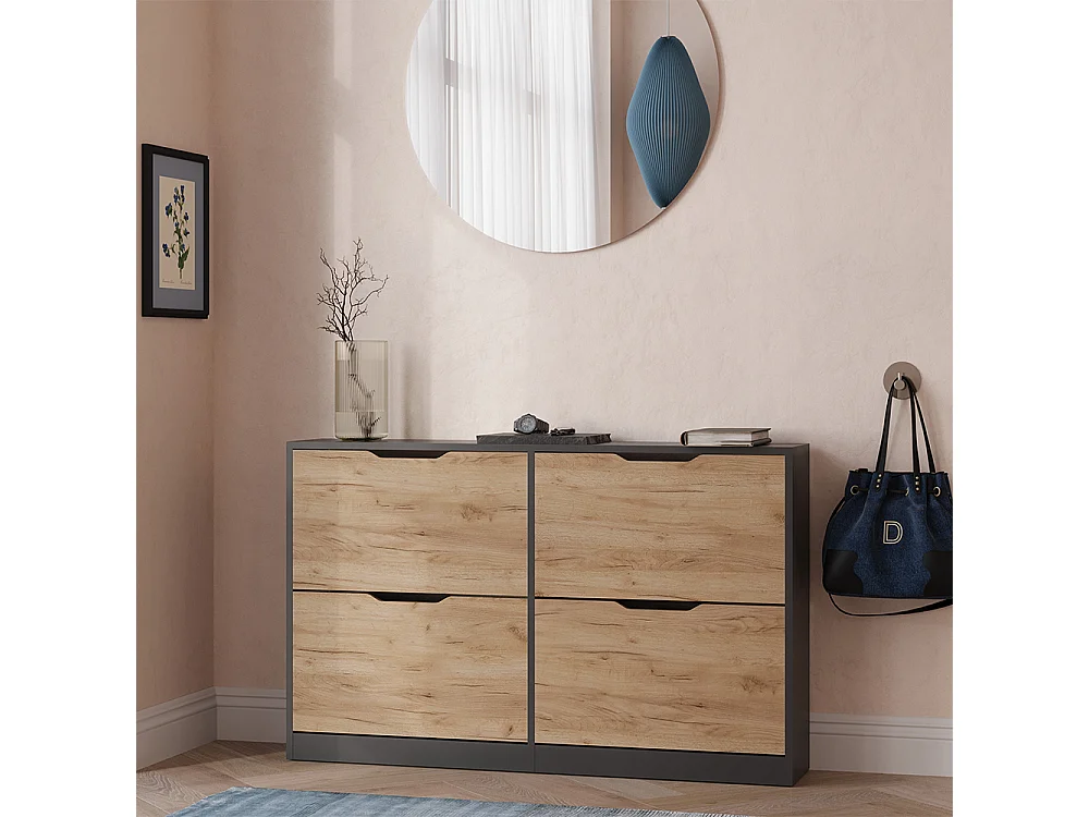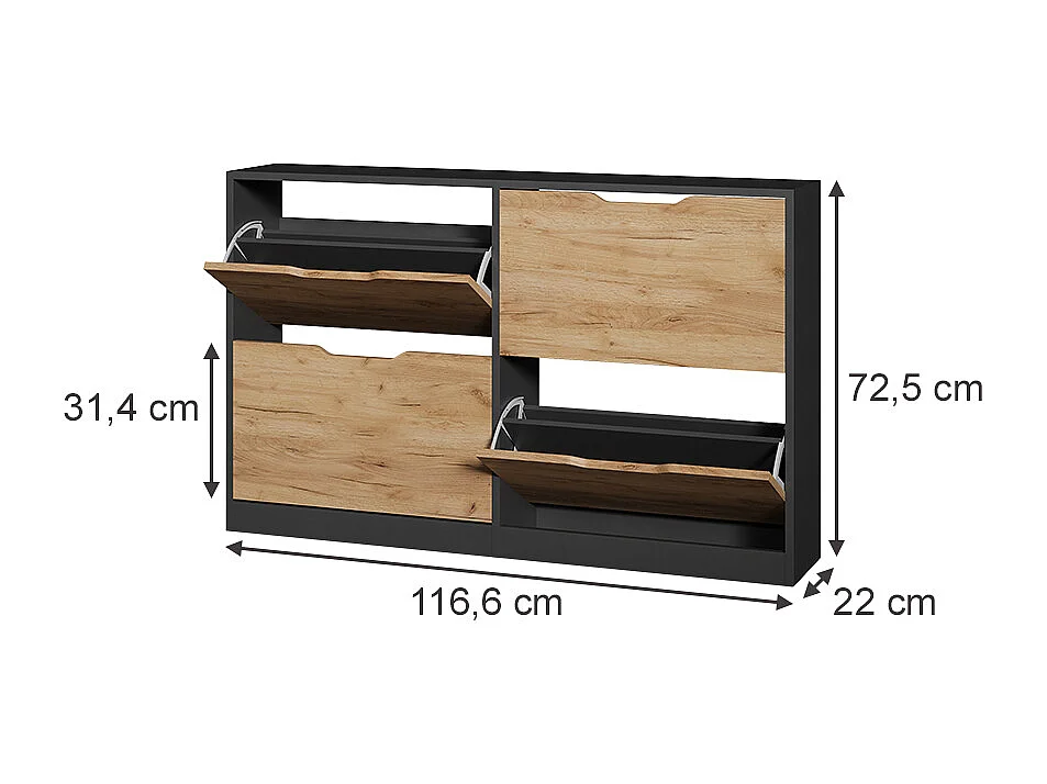 Benne à chaussures anthracite/chêne doré 116.6x22x72.5 luca
