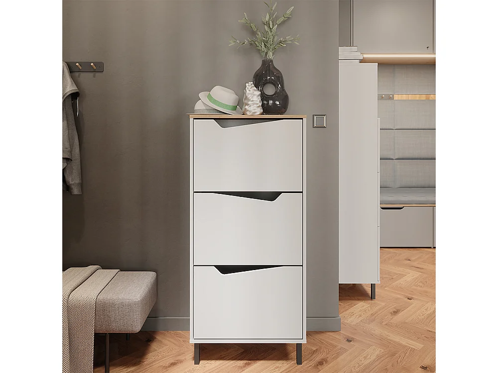 Benne à chaussures blanc/artisan 60x38x129.5 marelle