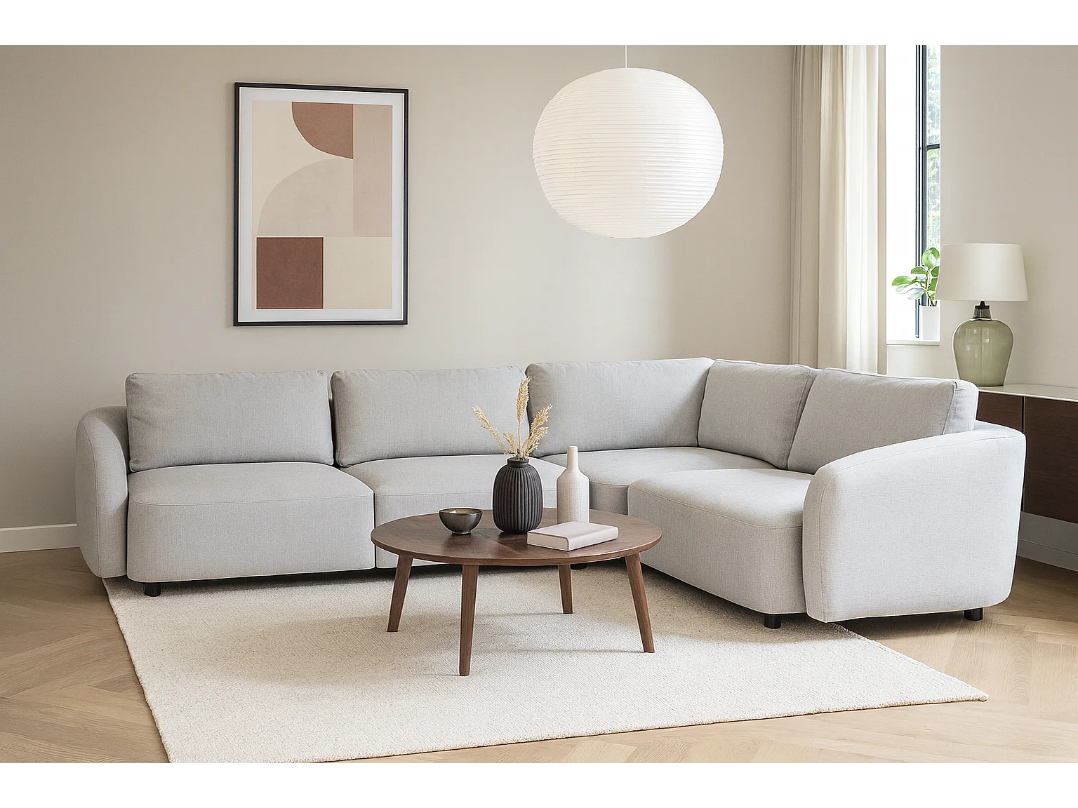 Bergen canapé d'angle réversible gris clair.