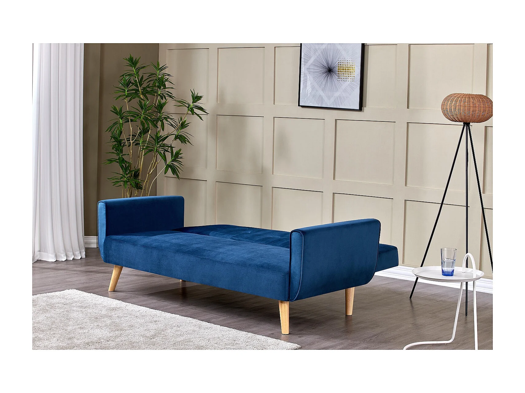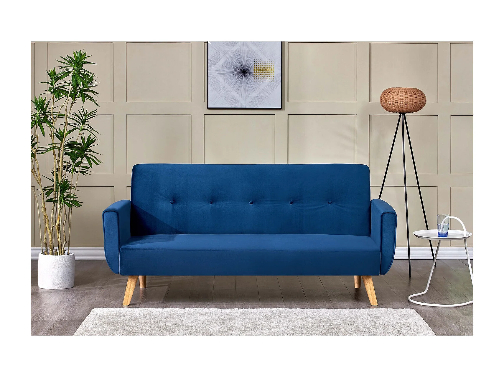 Canapé scandinave convertible 3 places en velours bleu nuit BERLIN