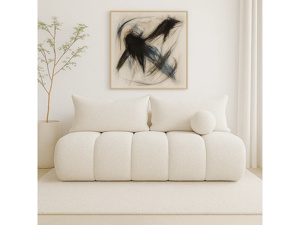BESILIO Canapé arrondi convertible Glomi – tissu bouclé, canapé avec fonction lit – Blanc
