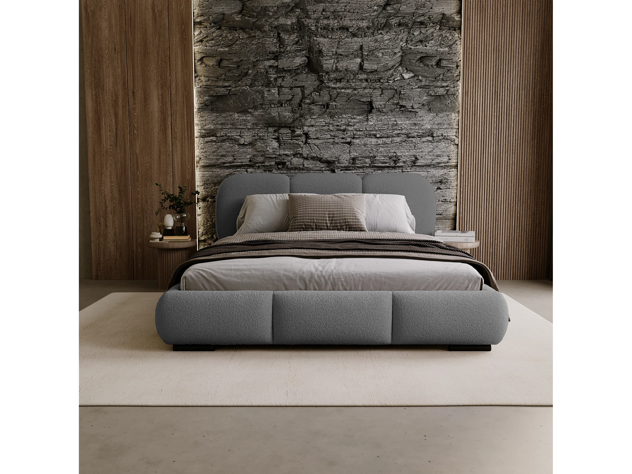 BESILIO Lit avec coffre de rangement et sommier 140x200 Holi – lit double tapissé en tissu bouclé/agneau – Gris