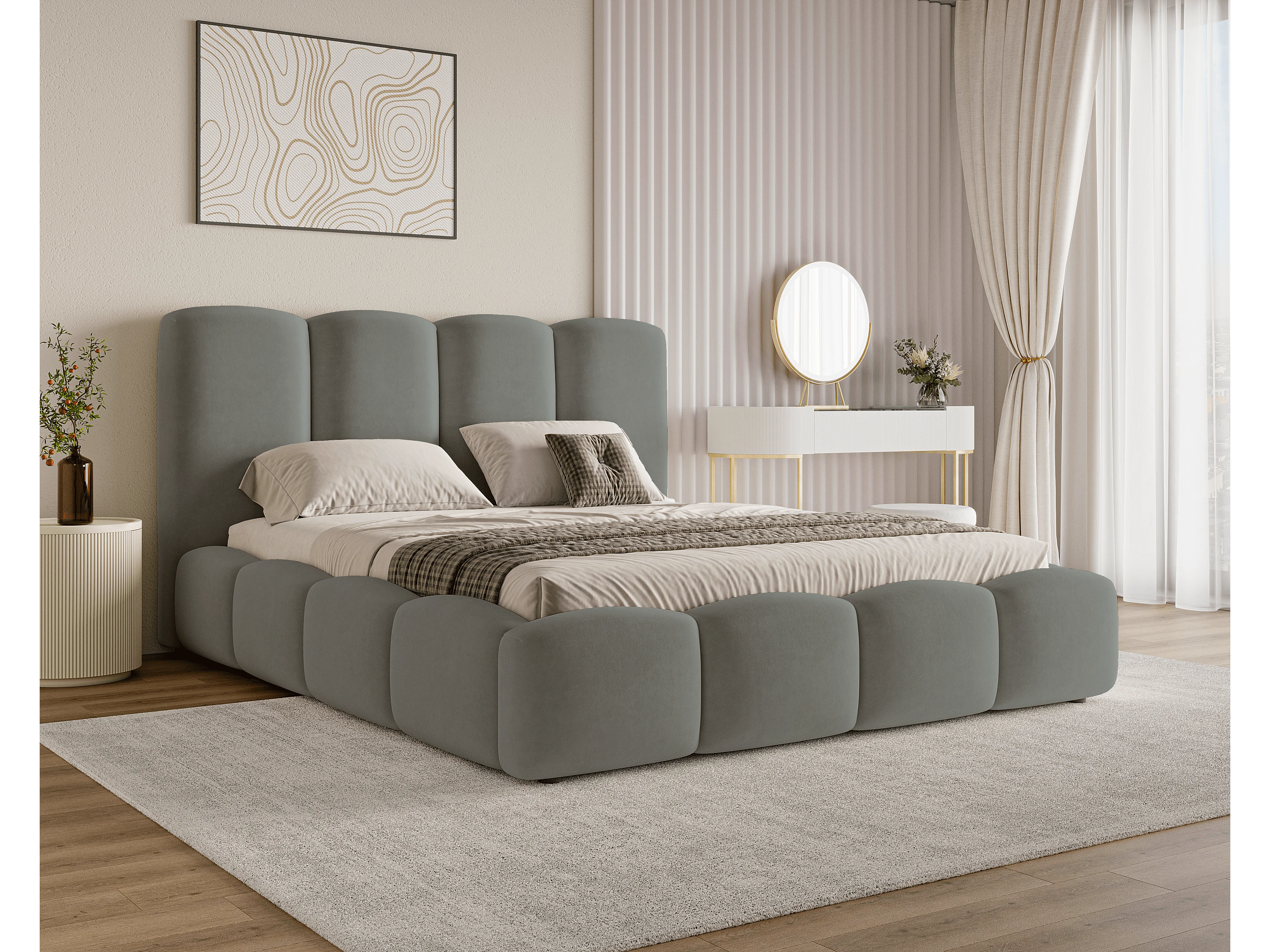BESILIO Lit nuage avec coffre de rangement et sommier 200x200 Puffy – lit tapissé en velours – Gris