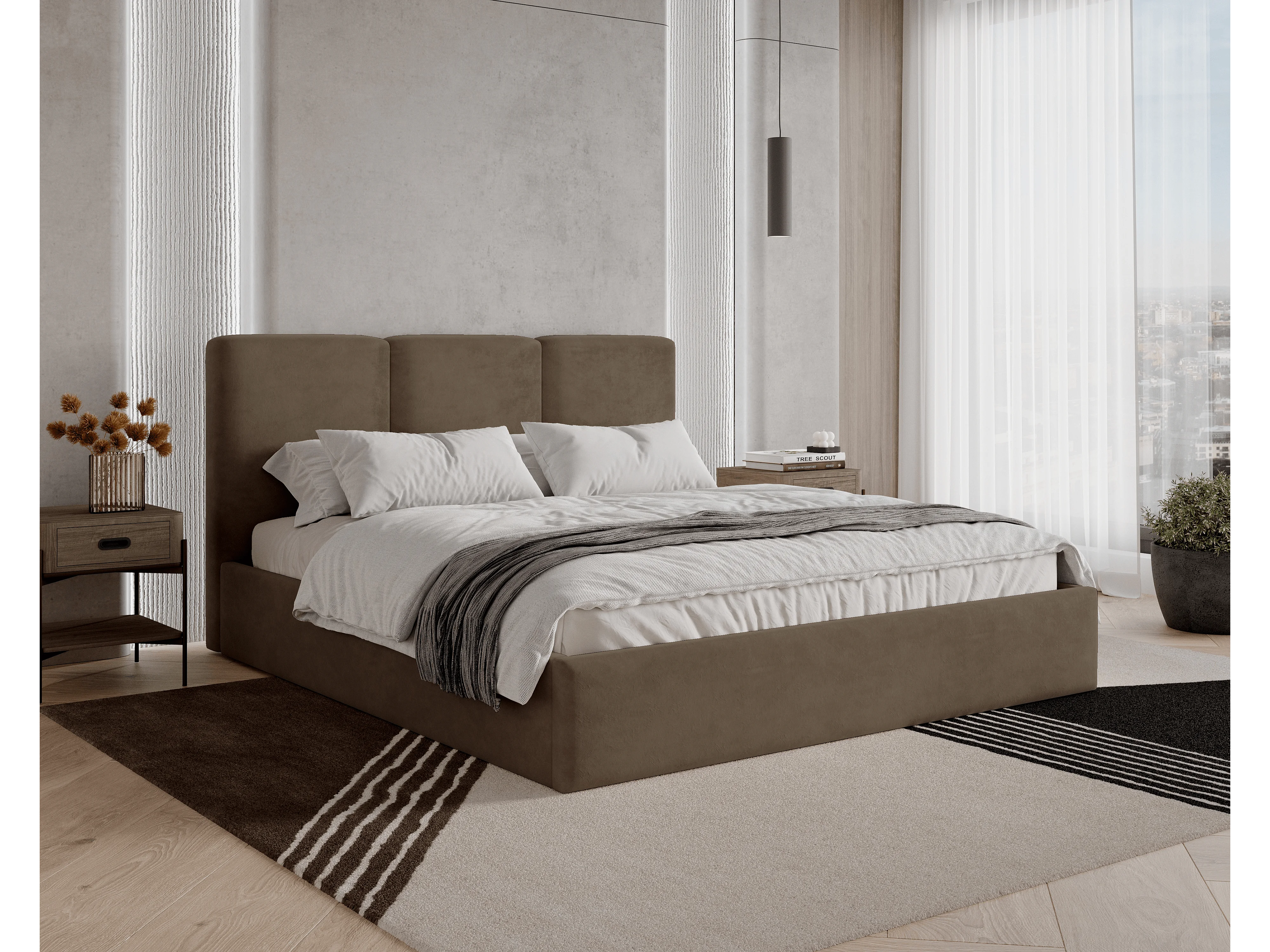 BESILIO Lit tapissé avec coffre de rangement 120x200 Mira – lit fin et minimaliste avec cadre en métal – Marron