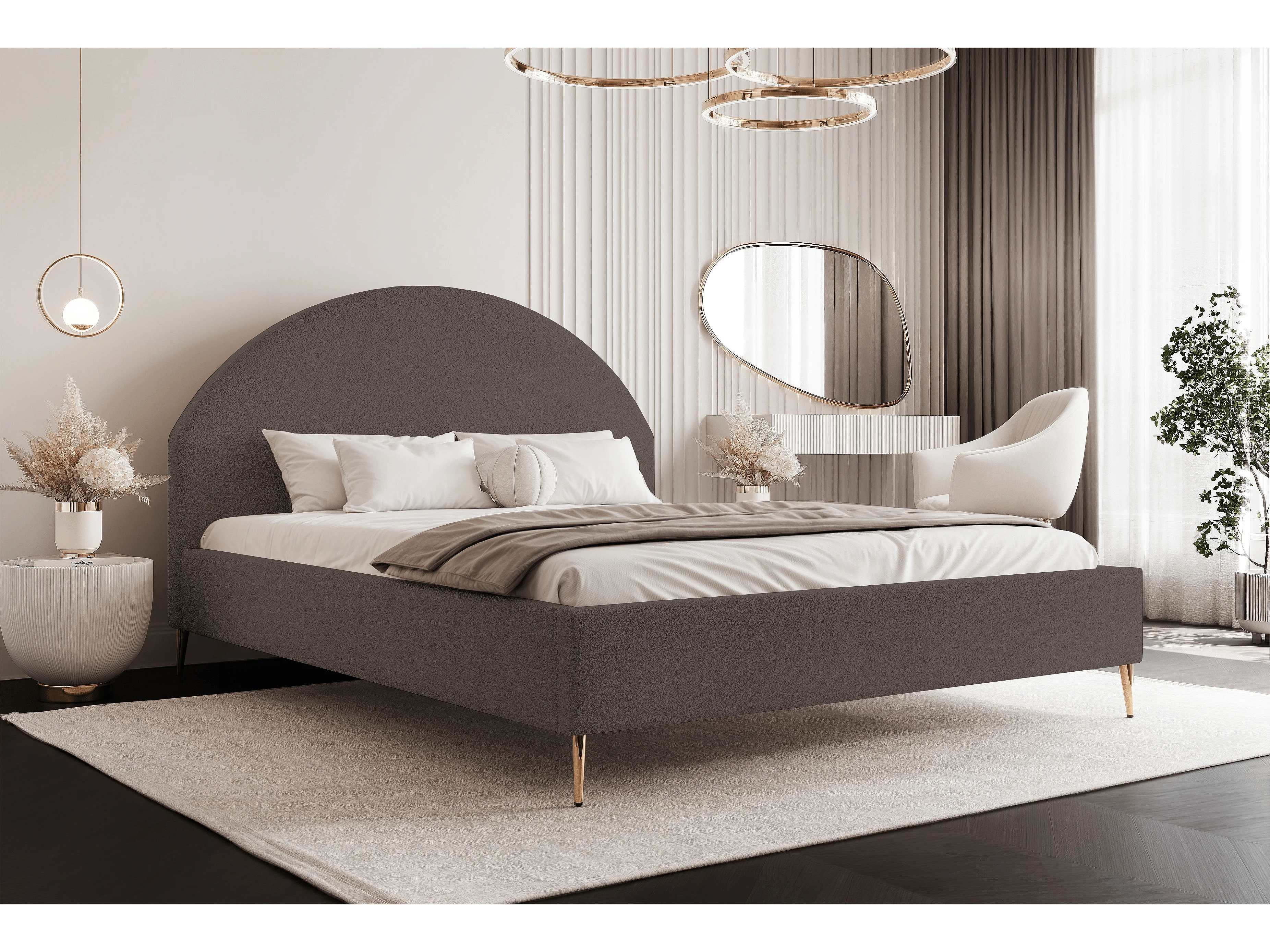 BESILIO Lit tapissé Boucle 120x200 Velora II – sommier à lattes, tête de lit, coffre de rangement, lit fin, pieds hauts dorés – Marron