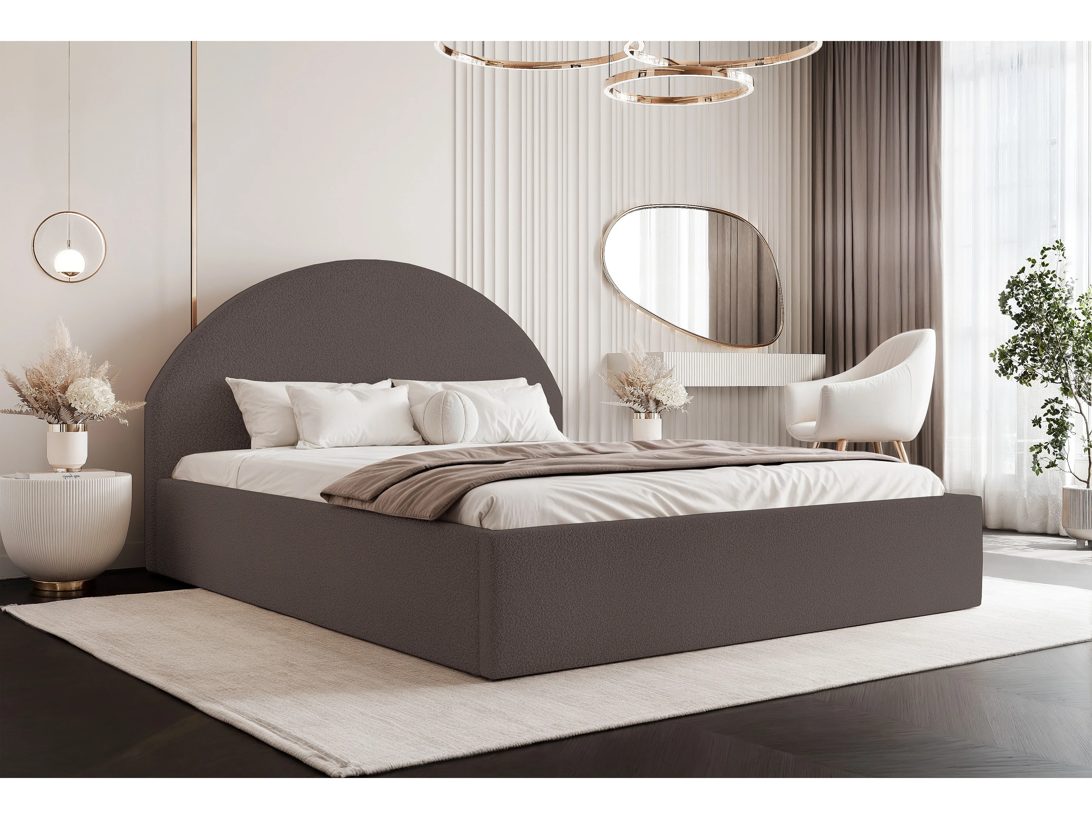 BESILIO Lit tapissé Boucle 120×200 Velora – sommier à lattes, tête de lit, coffre de rangement, lit slim – Marron