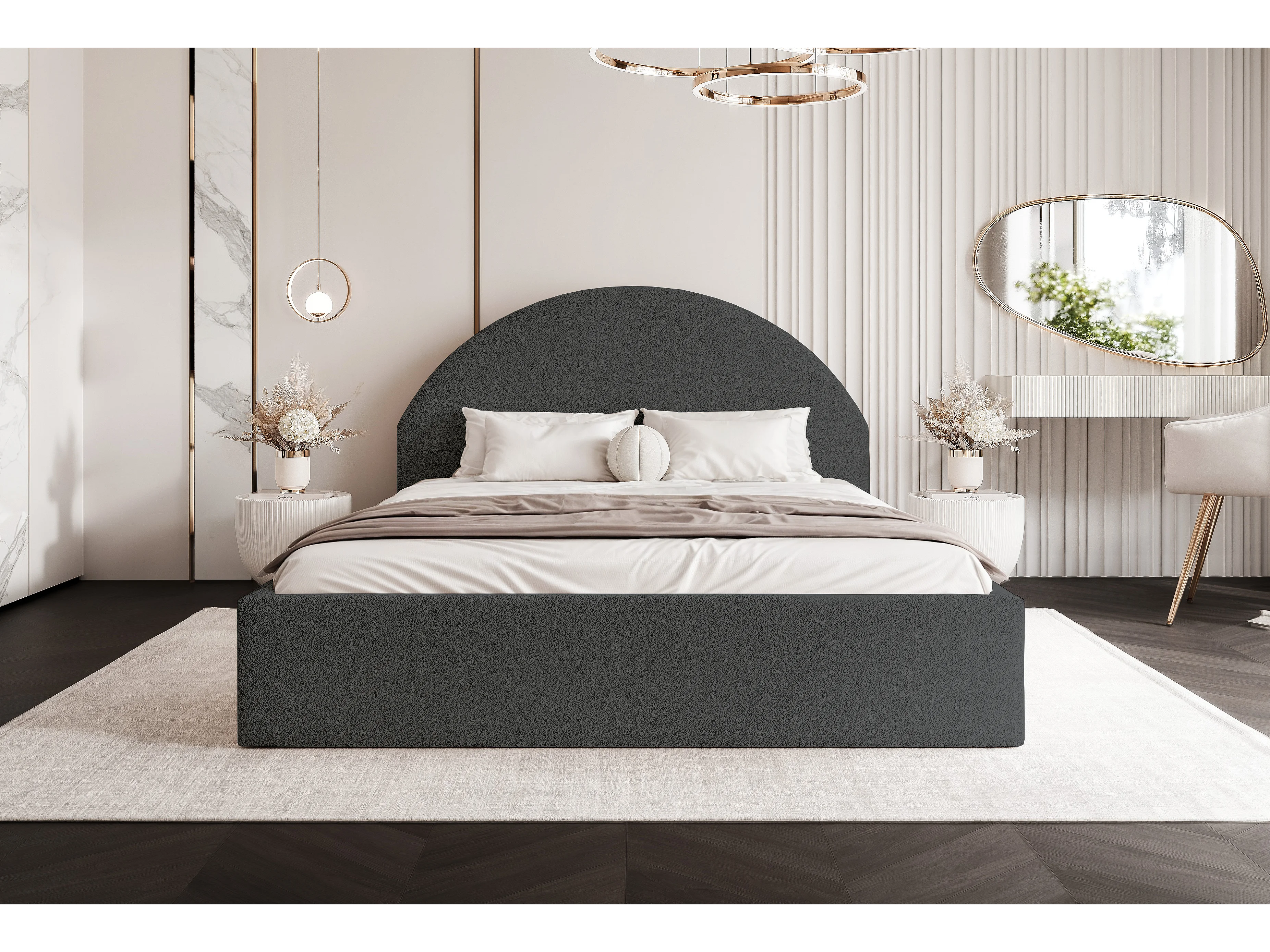 BESILIO Lit tapissé Boucle 140×200 Velora– sommier à lattes, tête de lit, coffre de rangement, lit slim – Gris