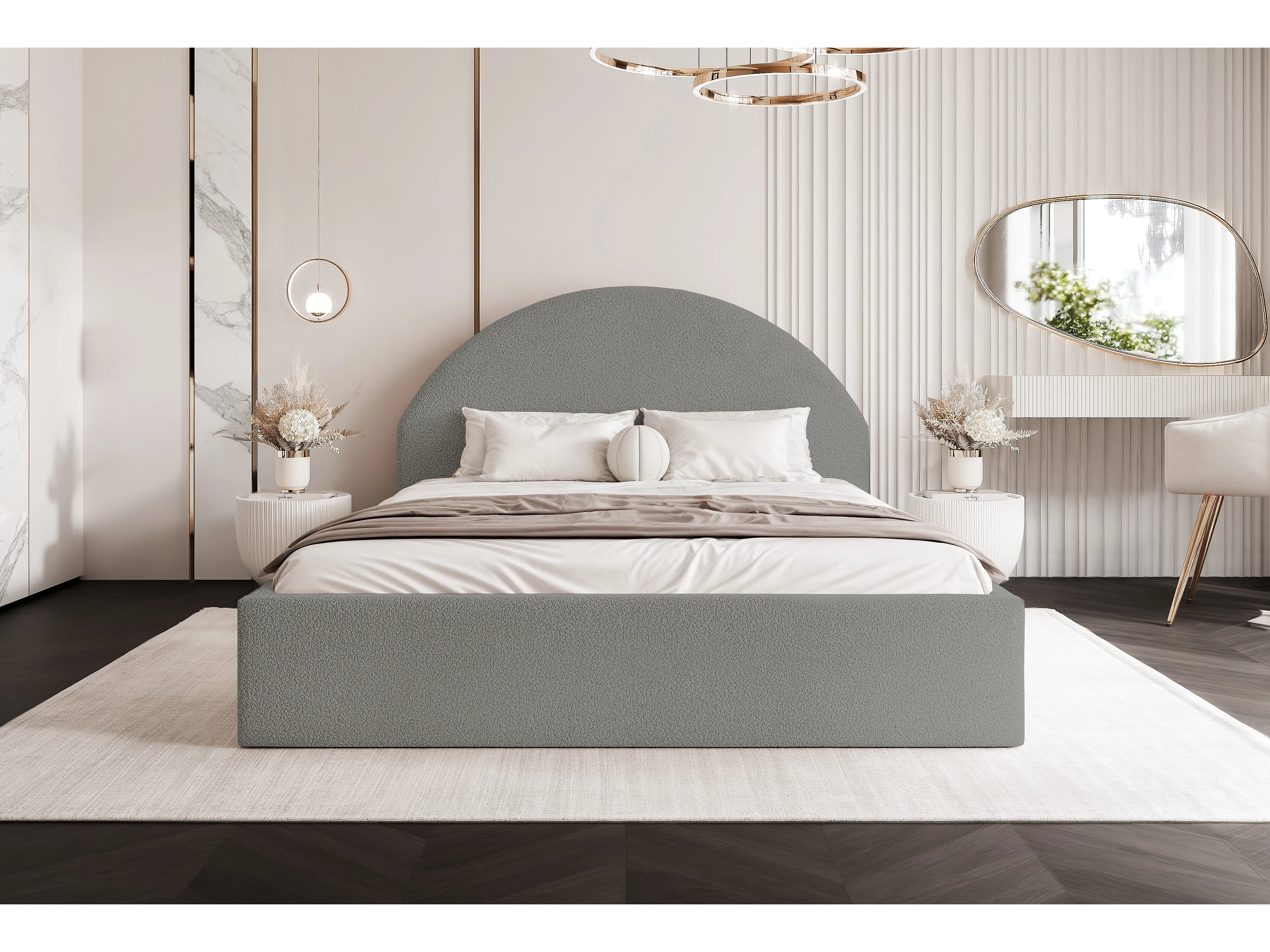 BESILIO Lit tapissé Boucle 180×200 Velora – sommier à lattes, tête de lit, coffre de rangement, lit slim – Gris clair