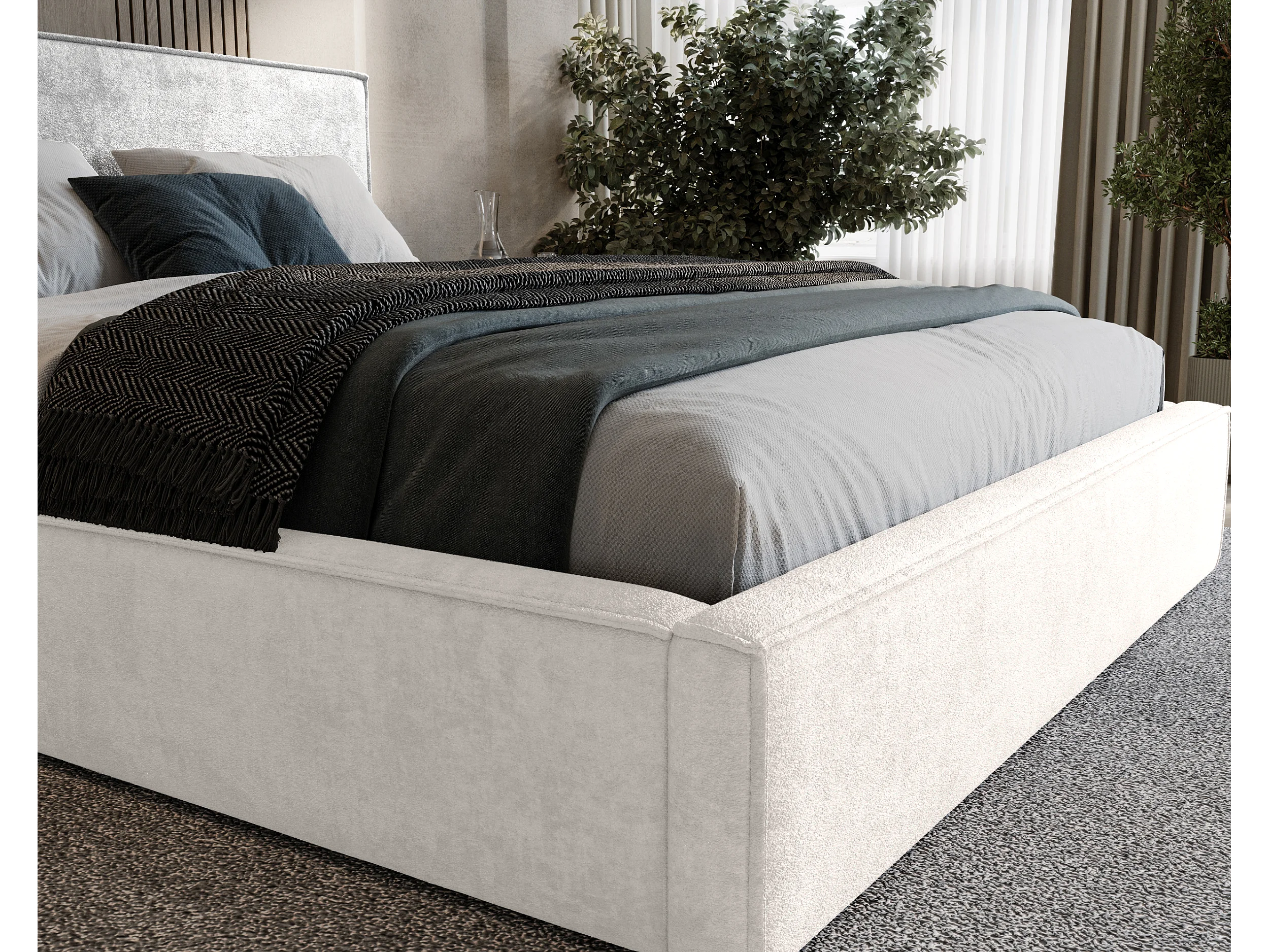 BESILIO Lit tapissé pour chambre à coucher 120x200 Zanzi - cadre métallique, coffre de rangement, bordure décorative, tissu chenille - Crème