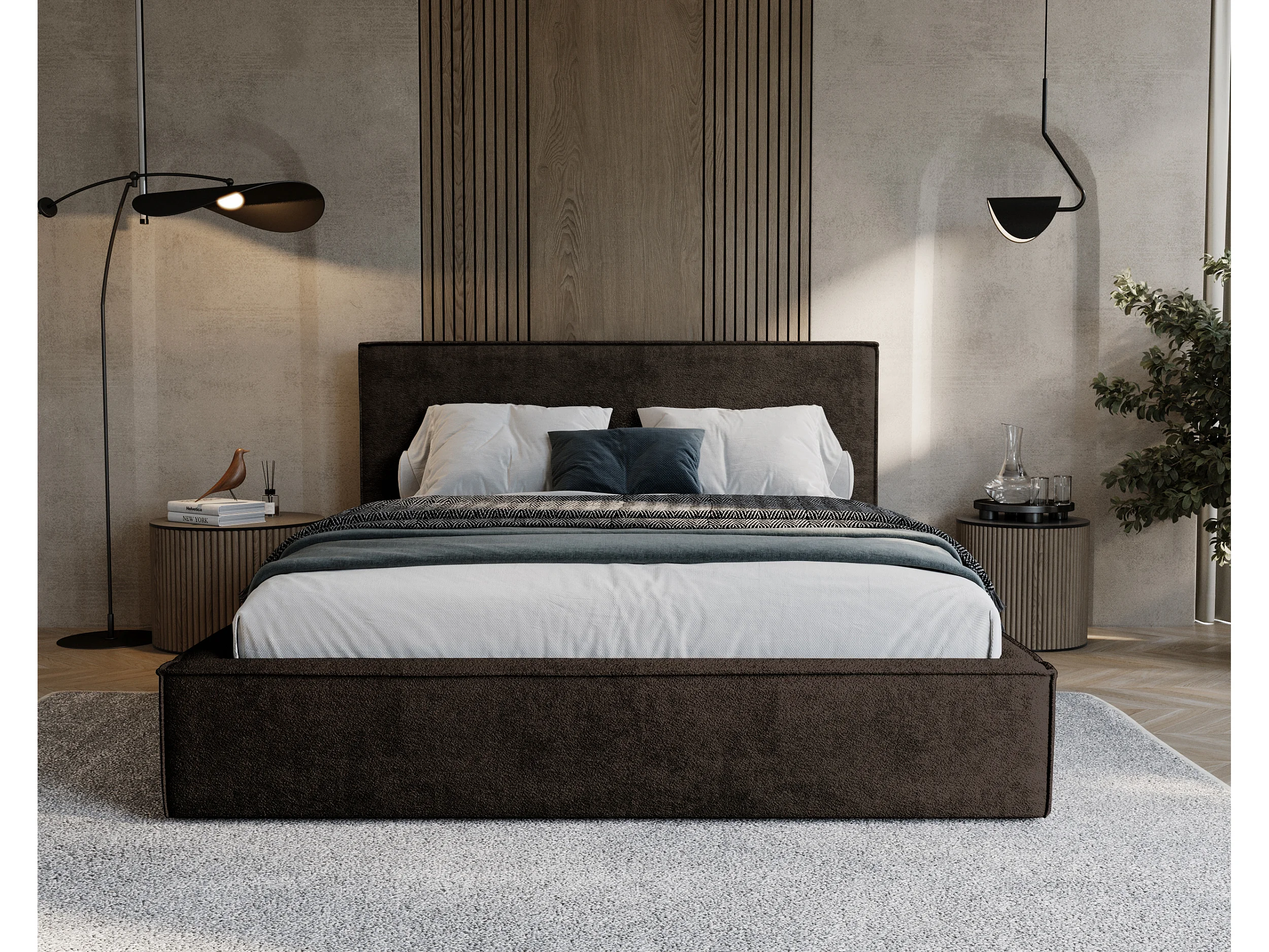Lit coffre Madera prestige – Revêtement tissu tapissé-Couleur Marron-140x200