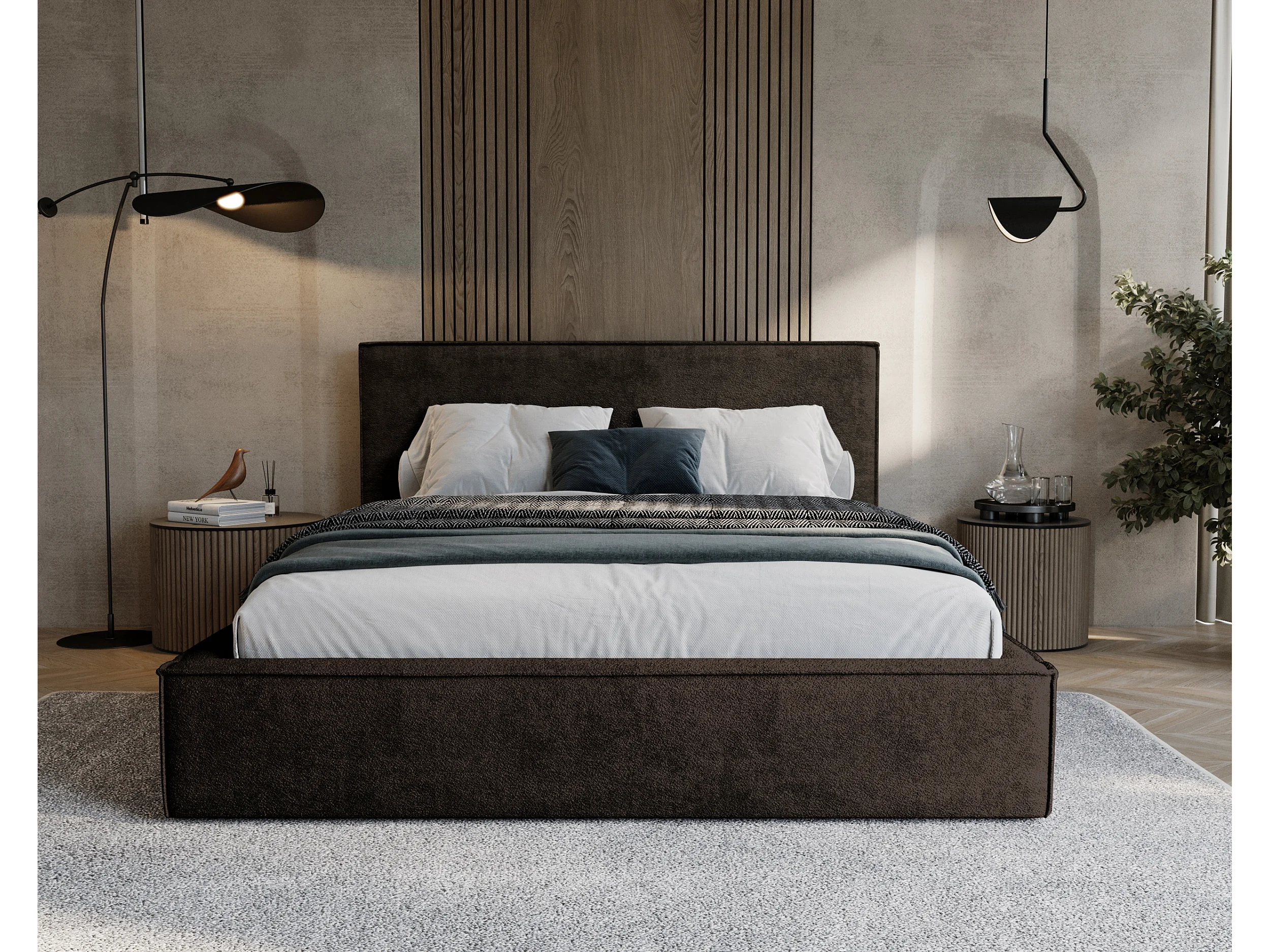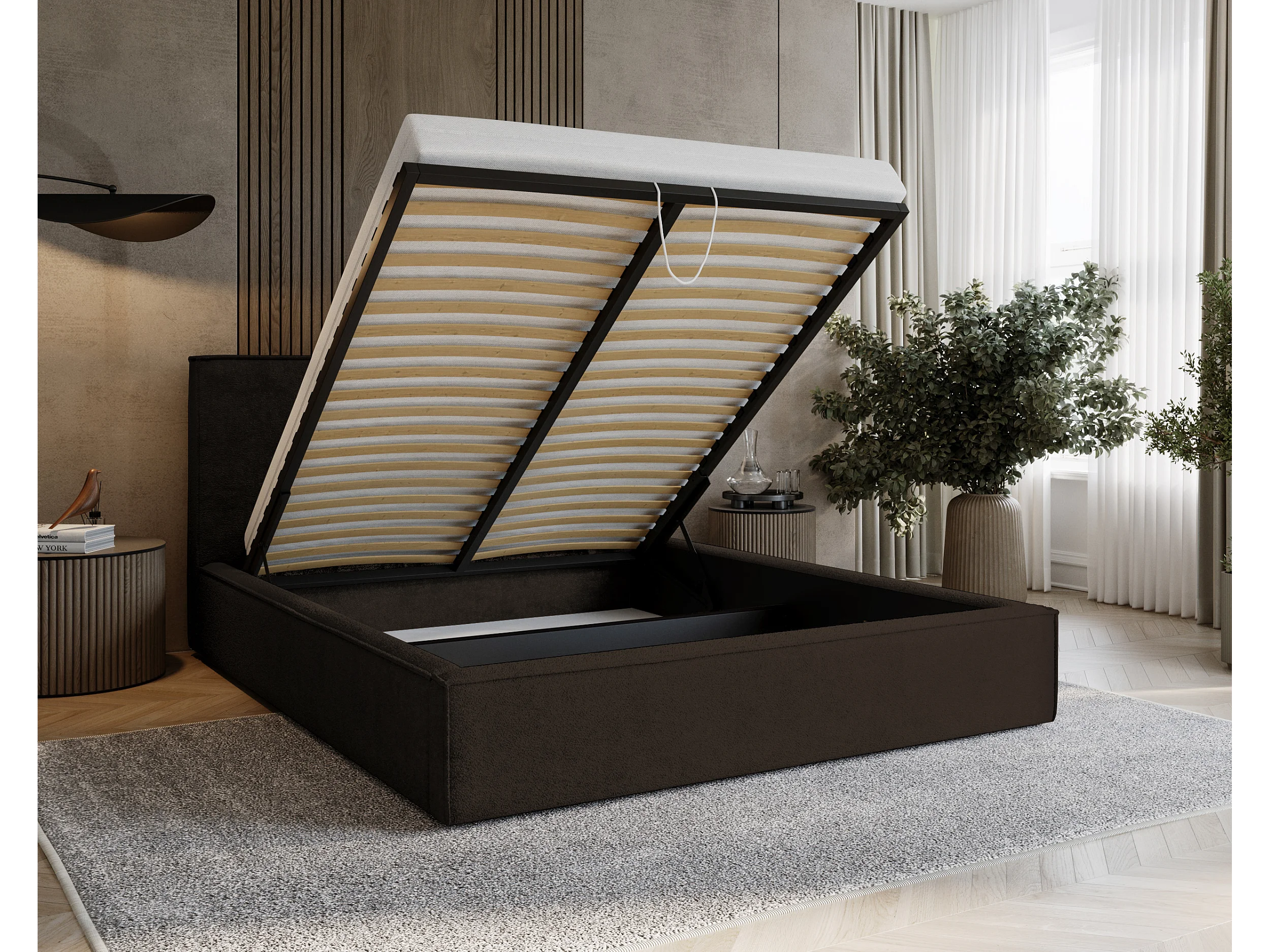 BESILIO Lit tapissé pour chambre à coucher 180x200 Zanzi - cadre métallique, coffre de rangement, bordure décorative, tissu chenille - Marron