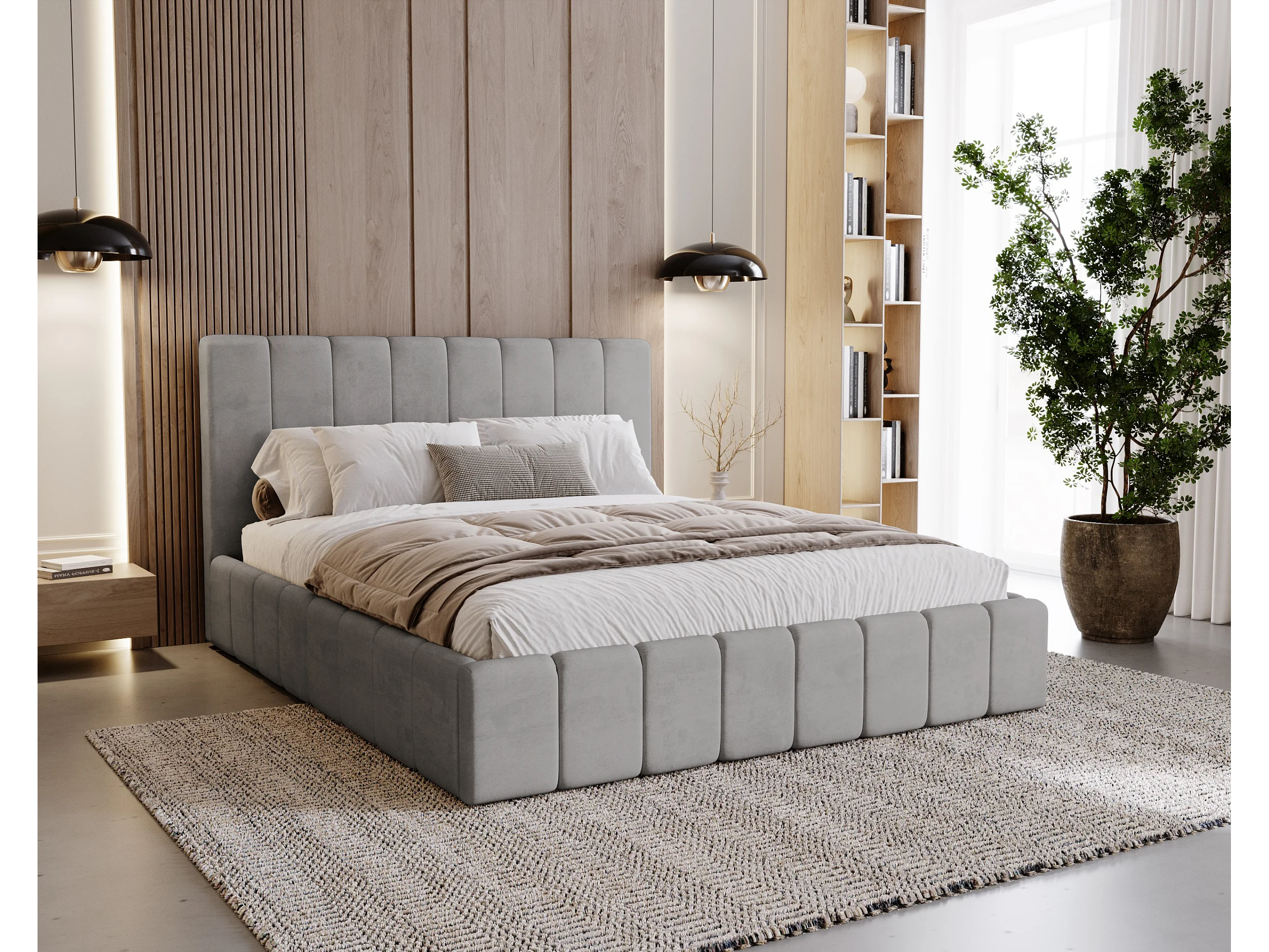 BESILIO Lit tapissé Slim 120x200 Lexy – cadre en métal, coffre de rangement pour le linge de lit, lit fin, tissu velours – Gris