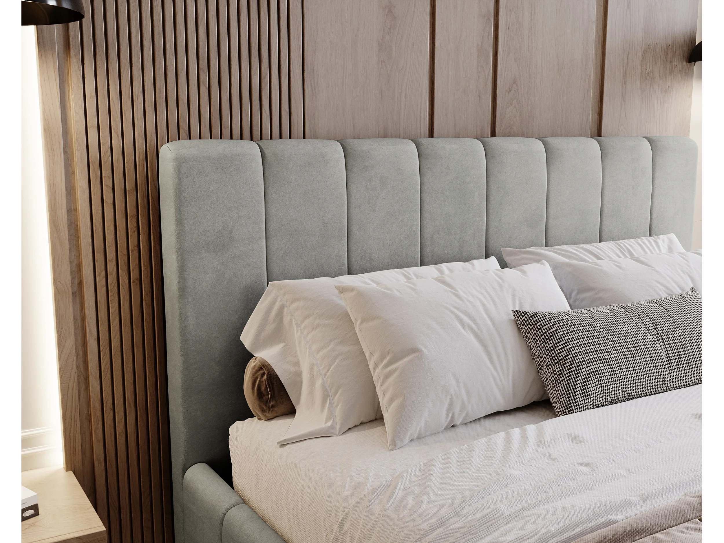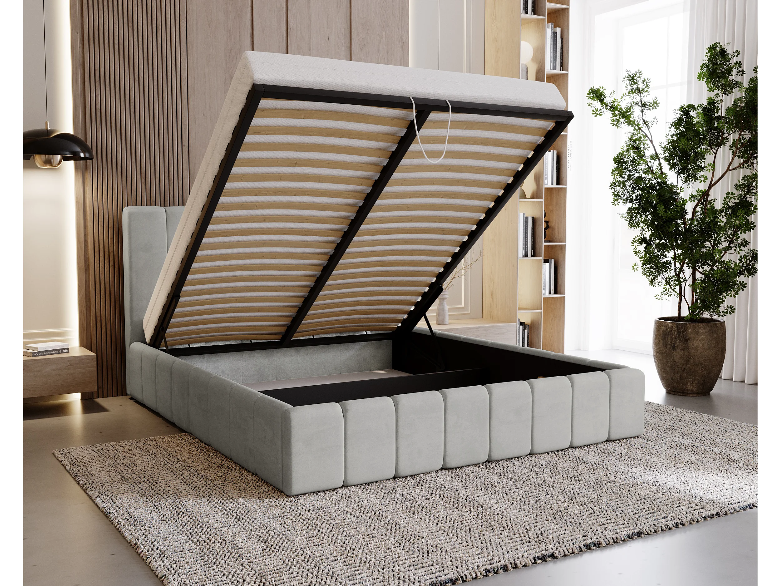 BESILIO Lit tapissé Slim 120x200 Lexy – cadre en métal, coffre de rangement pour le linge de lit, lit fin, tissu velours – Gris clair