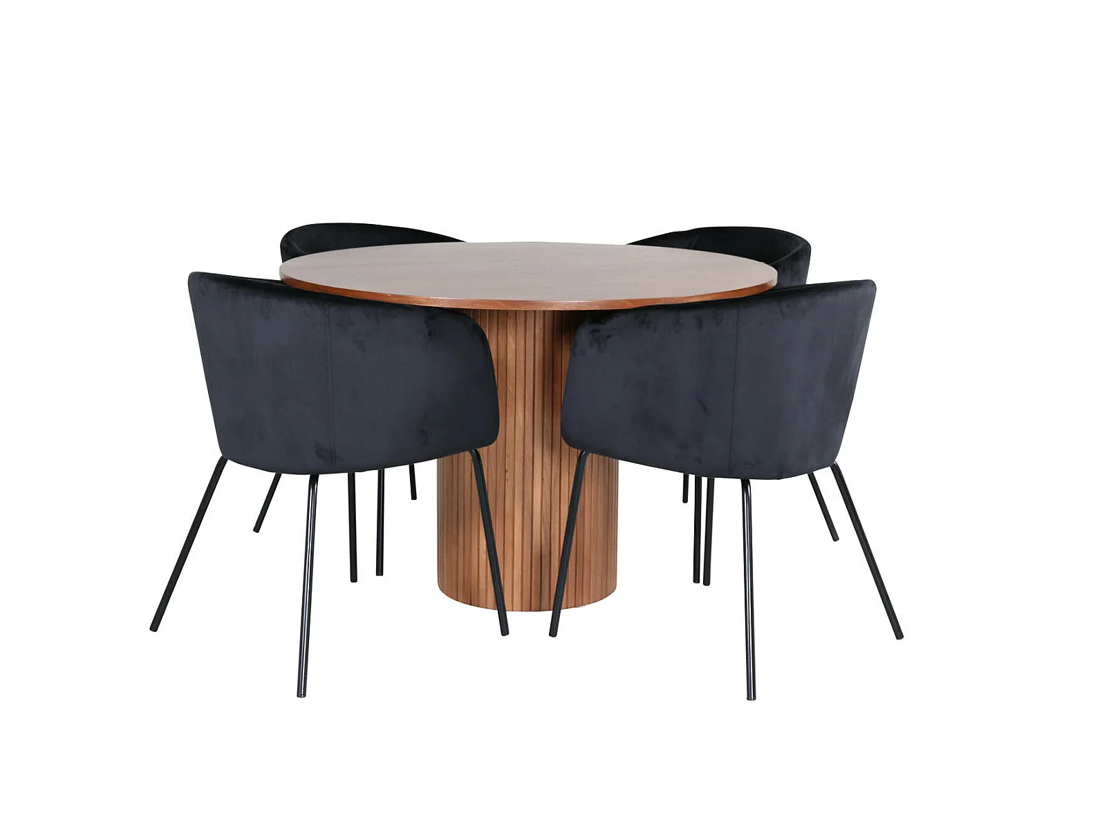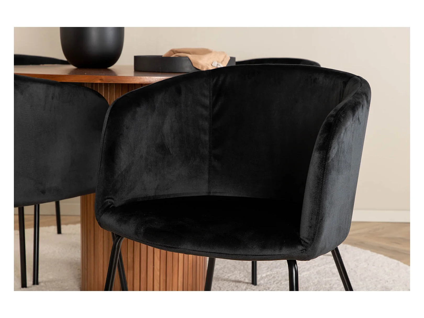 PlazaBLWA100 ensemble table, table noir et 4 Velvet Deluxe chaises noir.