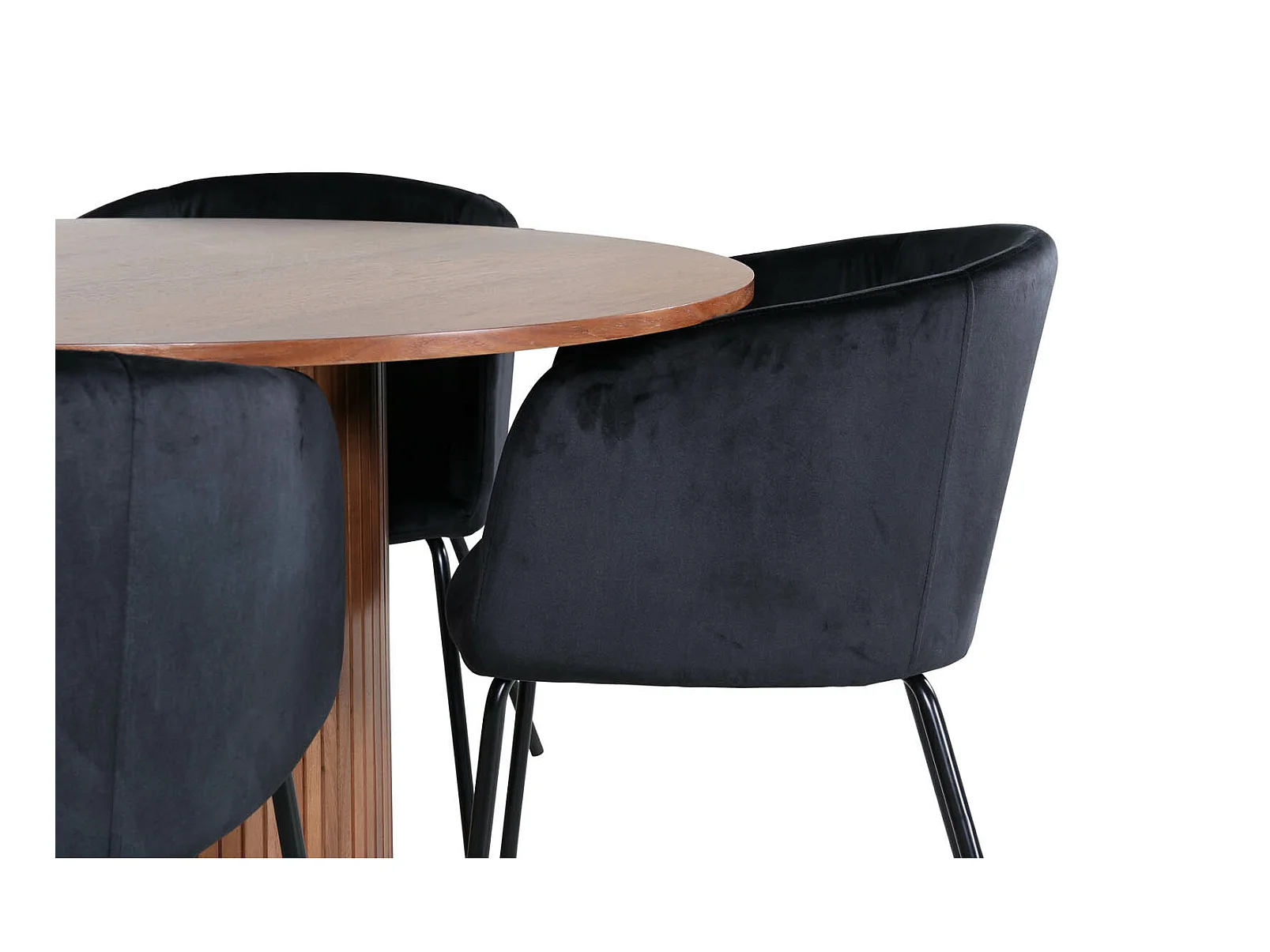 DippØ115BLBR ensemble table, table noir et 4 Velvet chaises Similicuir PU noir.