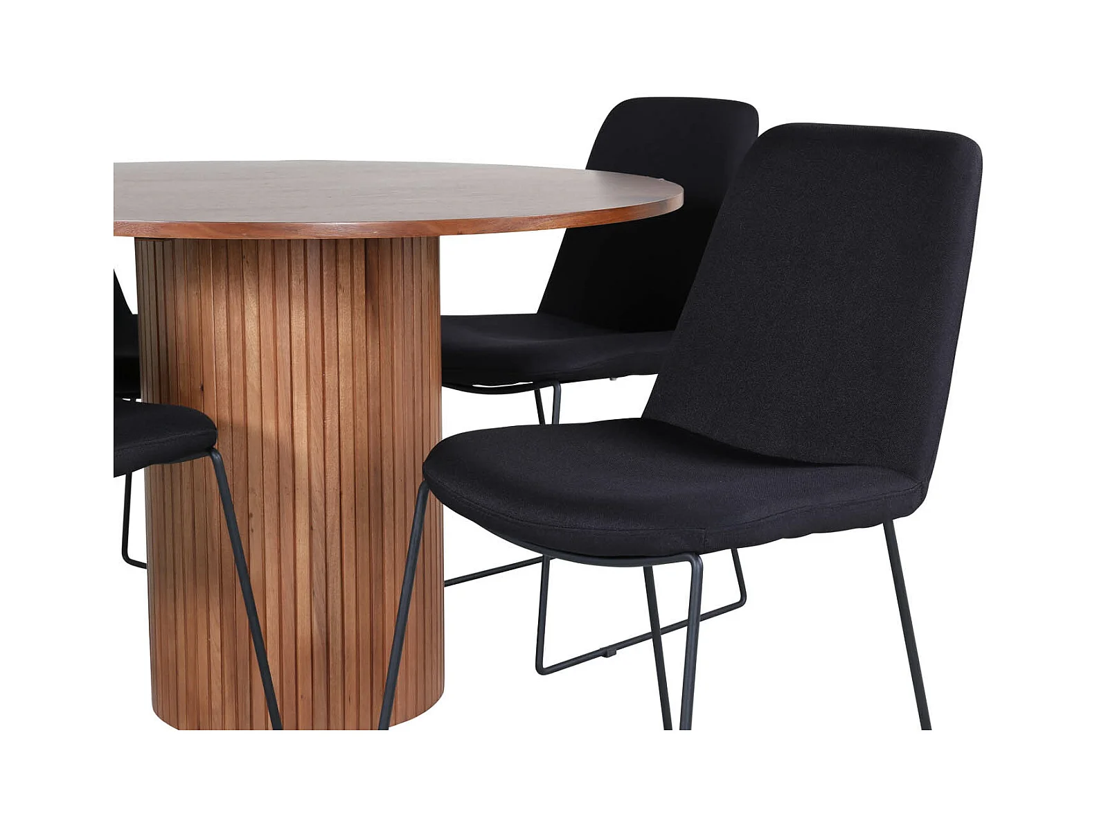 BiancaROWA ensemble table, table chêne plaqué et 4 Muce chaises noir.