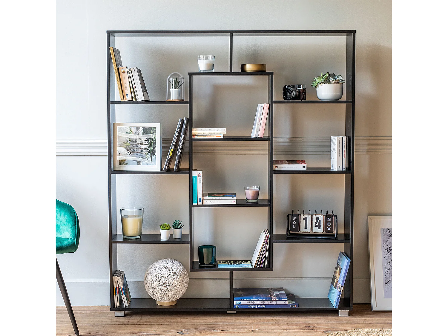 Bibliothèque 11 étagères multiformes noire EMILY - HAPPY GARDEN