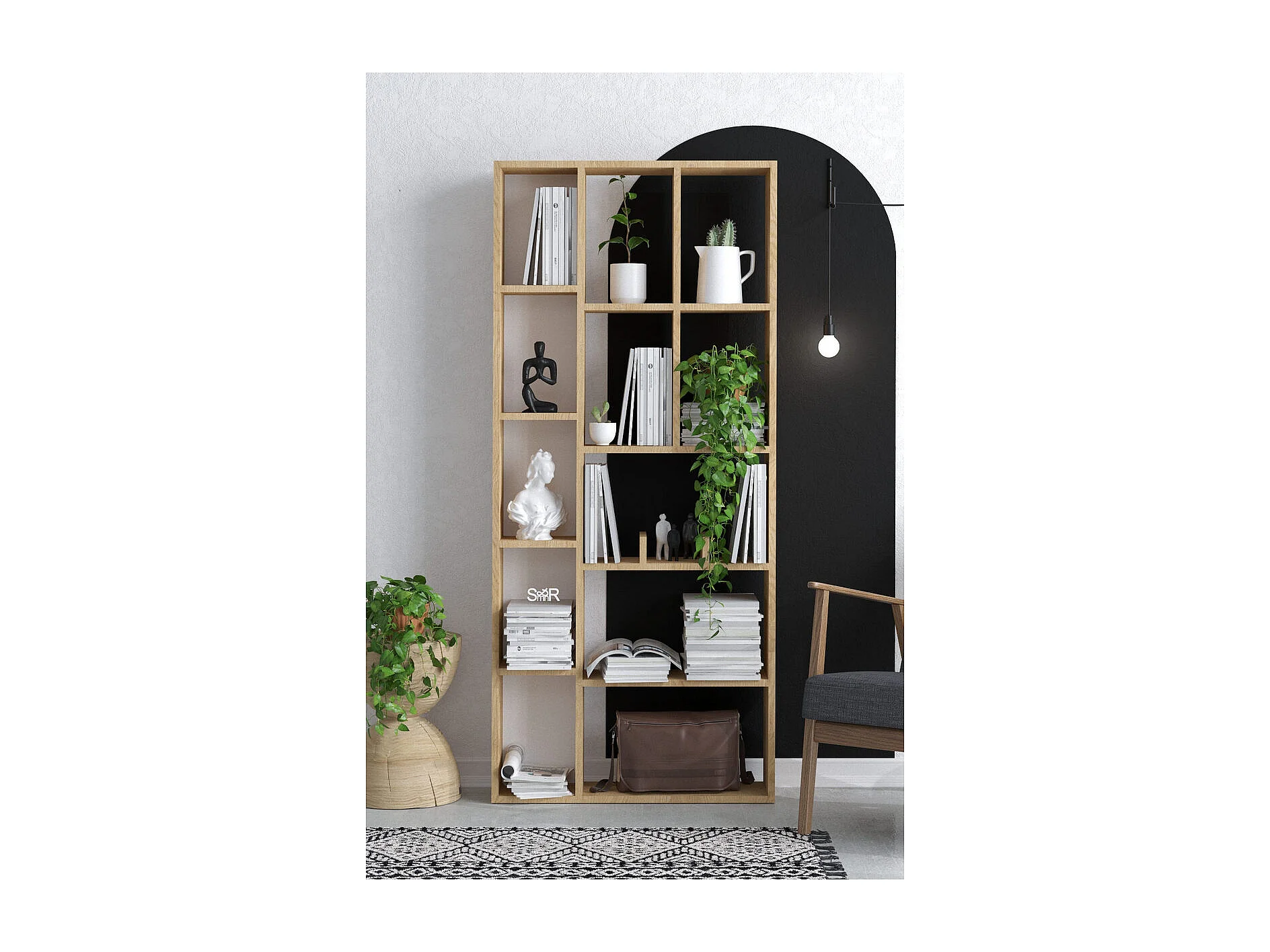 Bibliothèque 12 niches décor chêne saphir H170 cm - DEMIOS