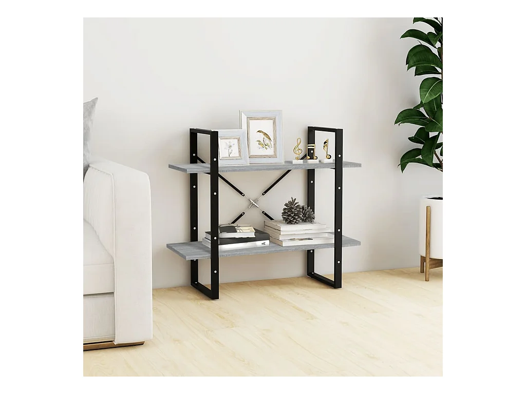 Bibliothèque à 2 niveaux Gris béton 80x30x70 cm bois ingénierie