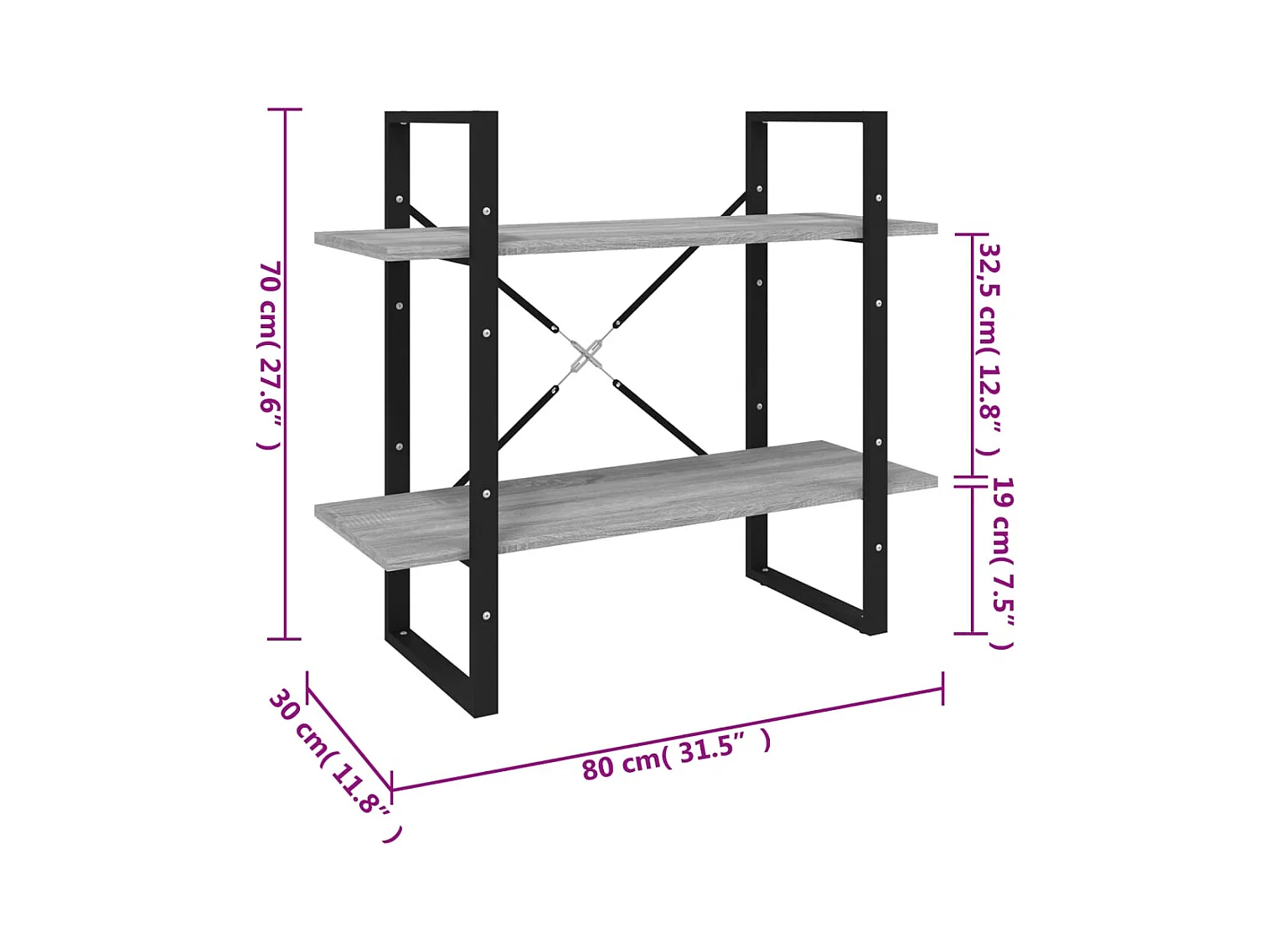 Bibliothèque 2 niveaux Sonoma gris 80x30x70cm Bois d'ingénierie