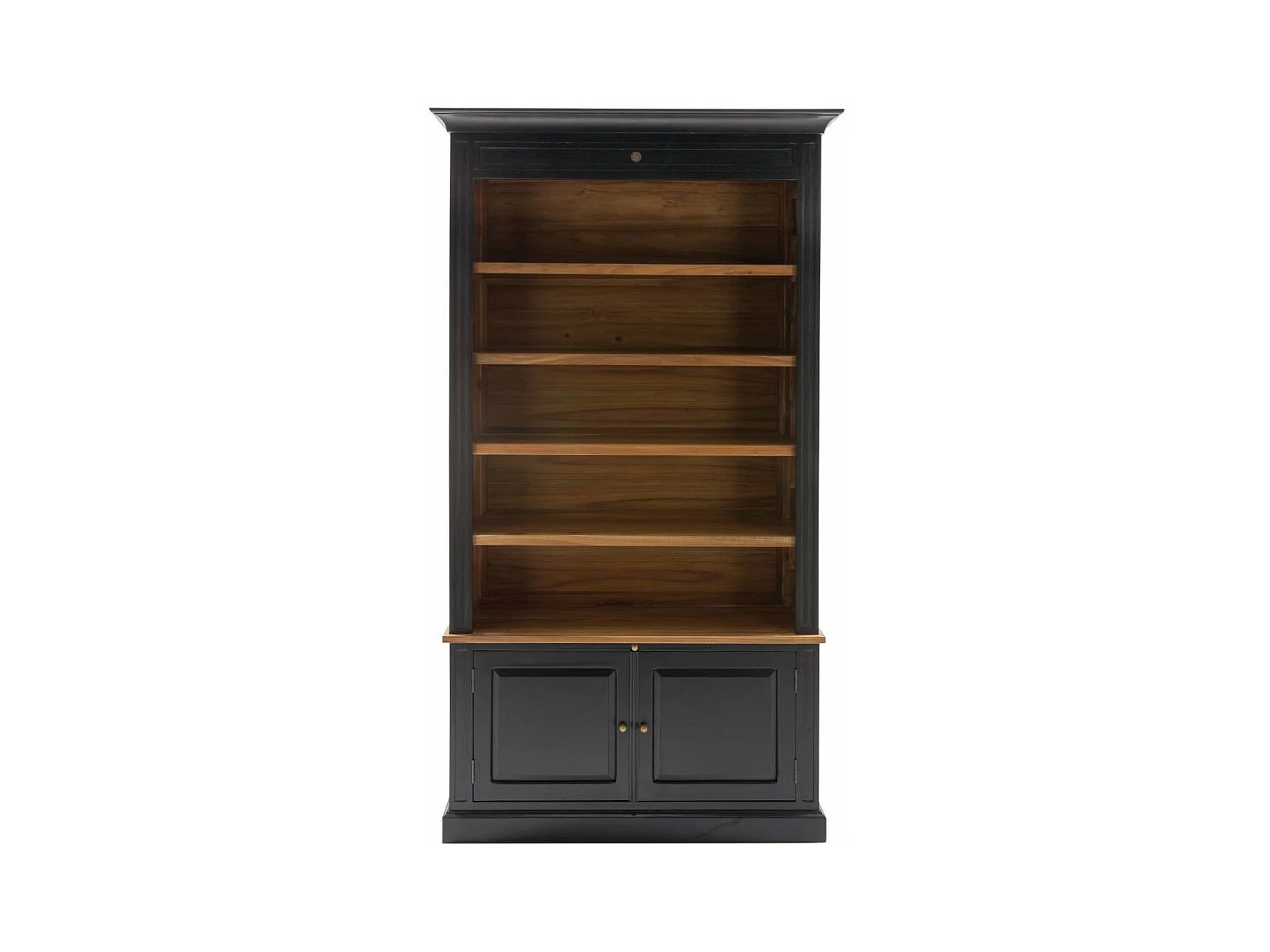 Bibliothèque 2 portes en acacia massif noir H240 cm - FONTAINEBLEAU