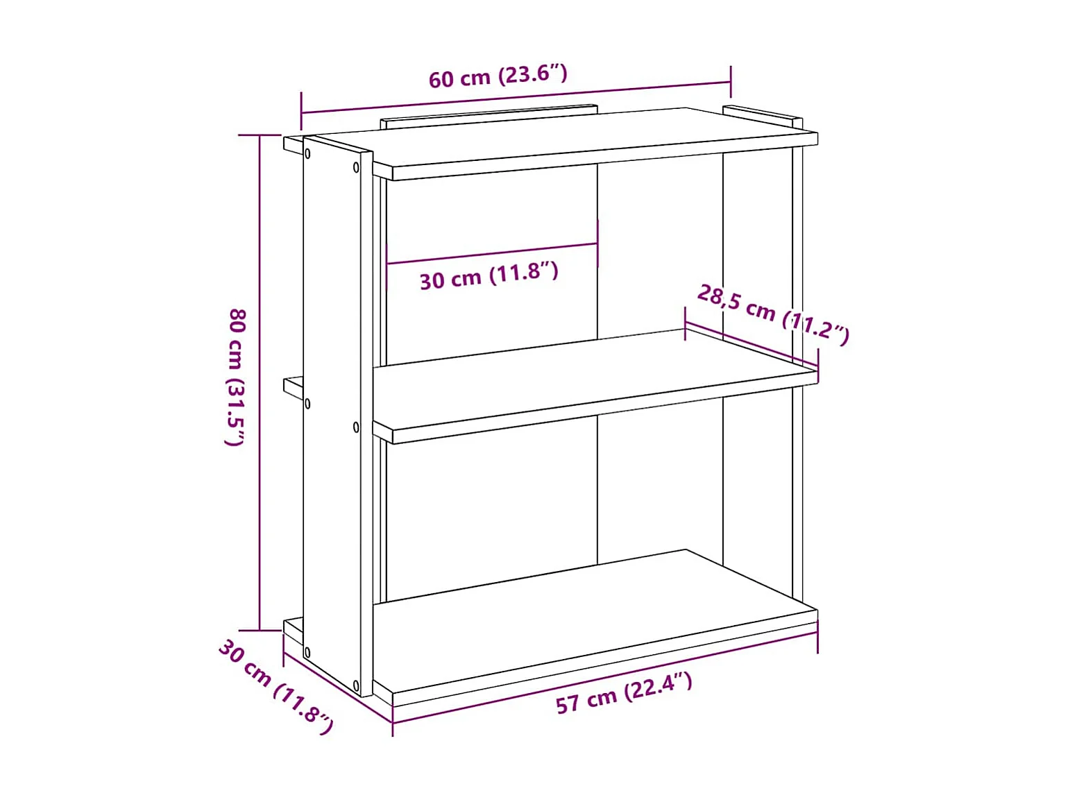 Bibliothèque à 3 niveaux vieux bois 60x30x80 cm bois ingénierie