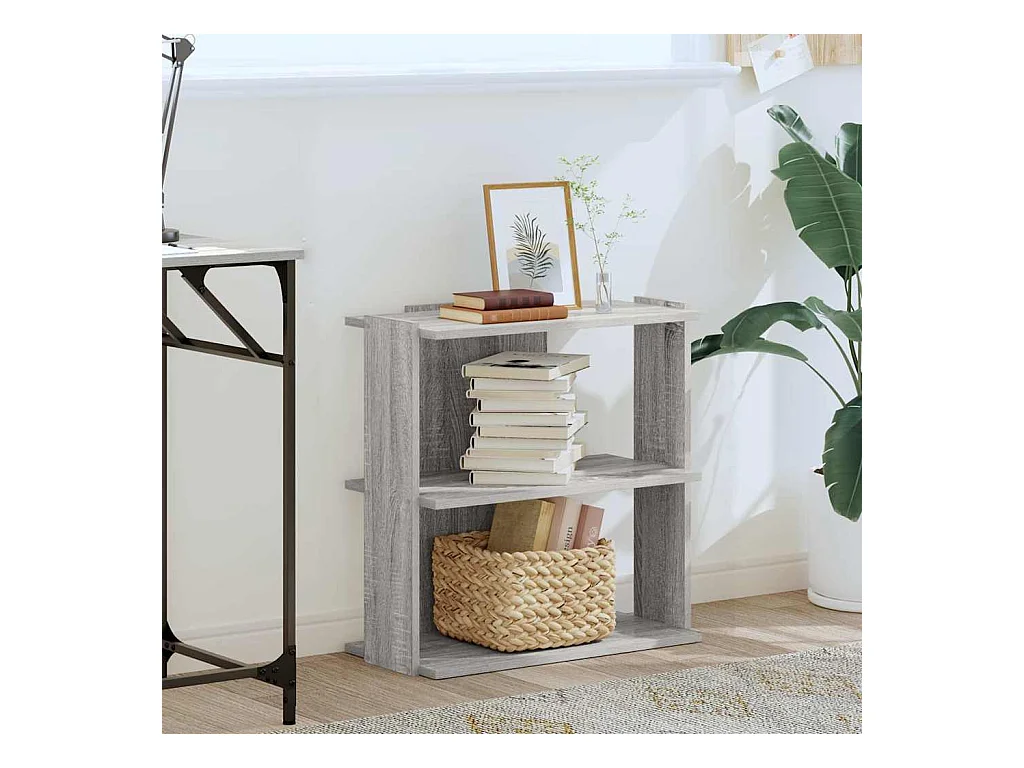 Bibliothèque à 3 niveaux gris béton 60x30x60 cm bois ingénierie