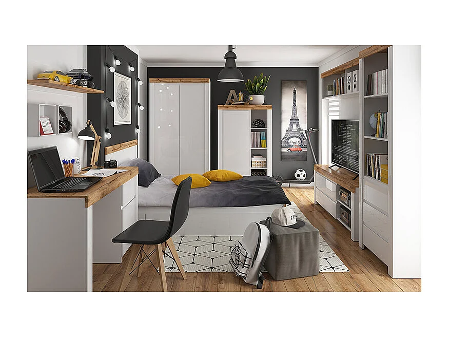 Bibliothèque 3 tiroirs Hella Blanc et Bois