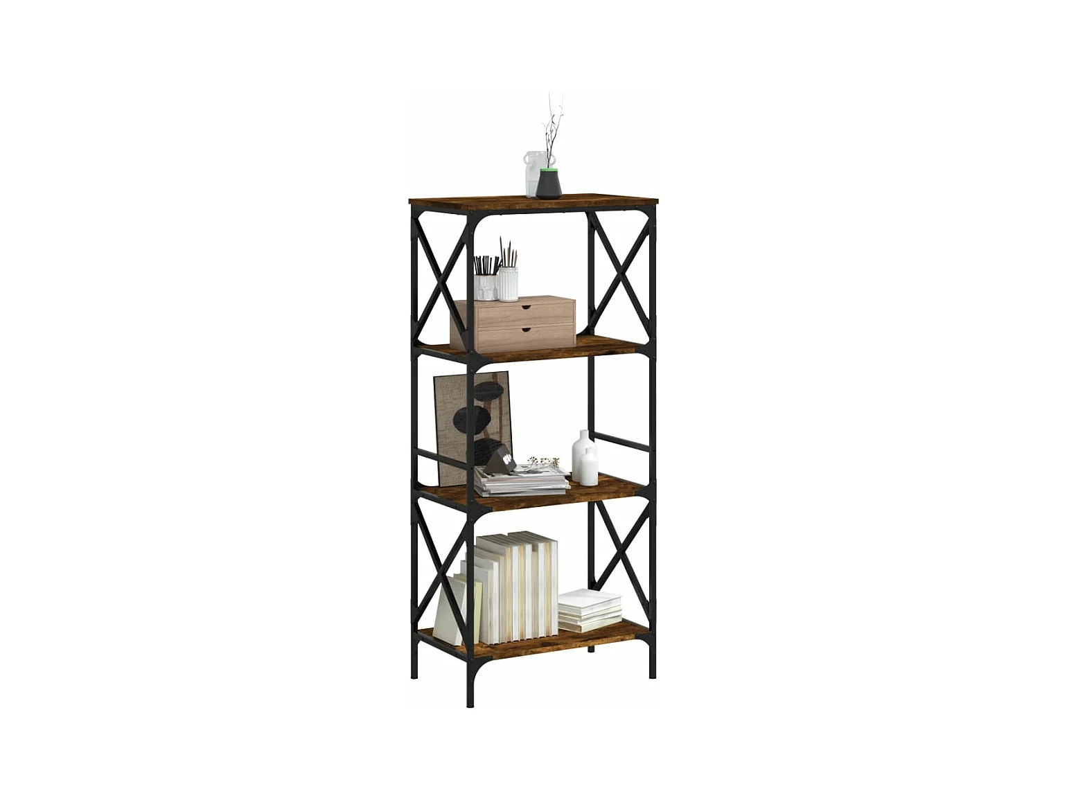 Bibliothèque 4 niveaux chêne fumé 59x35x132cm bois d'ingénierie