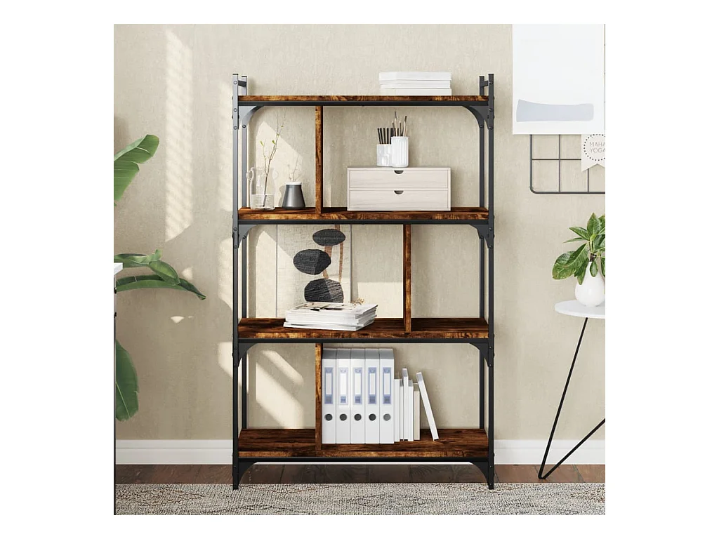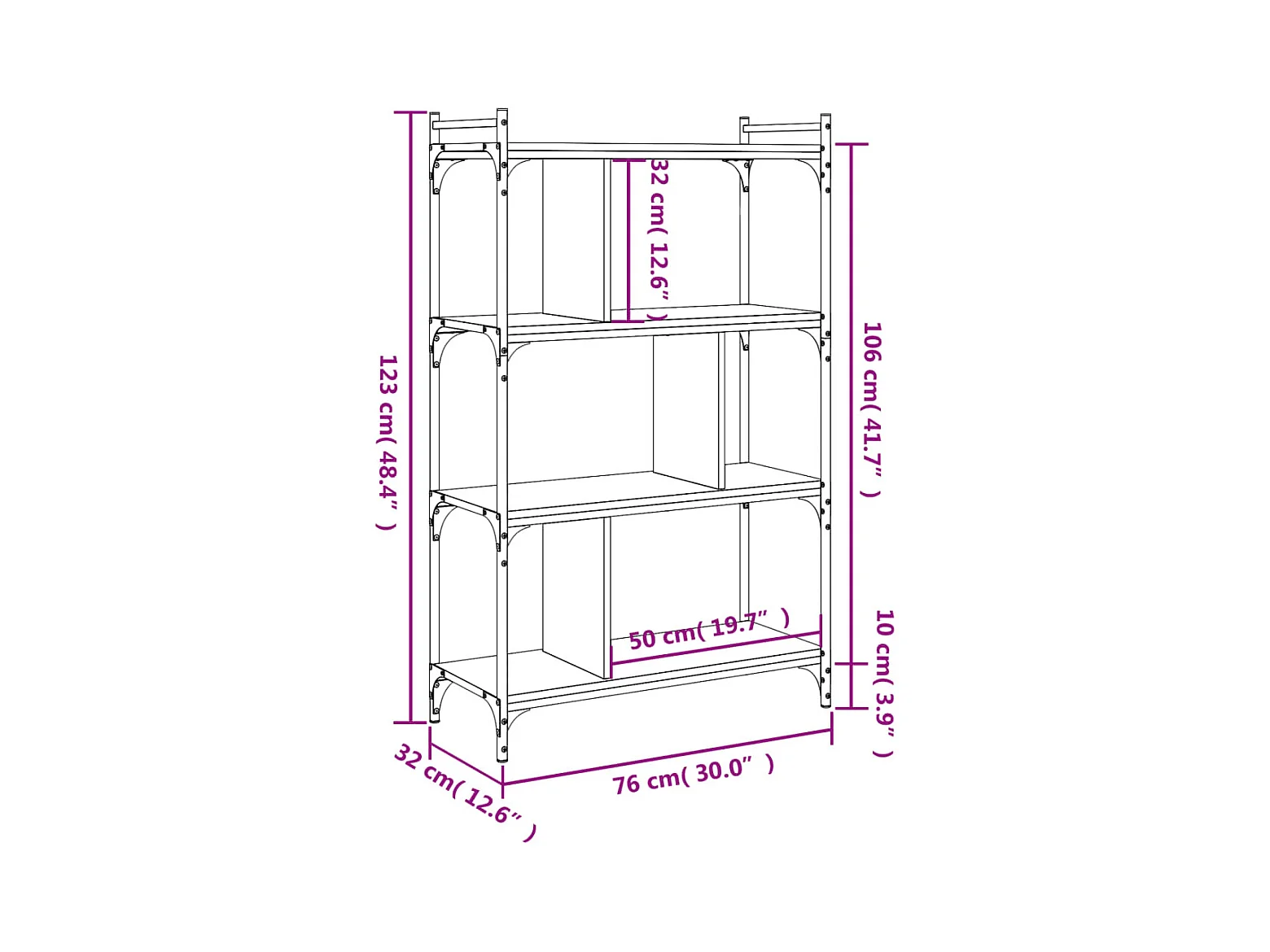 Bibliothèque 4 niveaux chêne fumé 76x32x123cm bois d'ingénierie