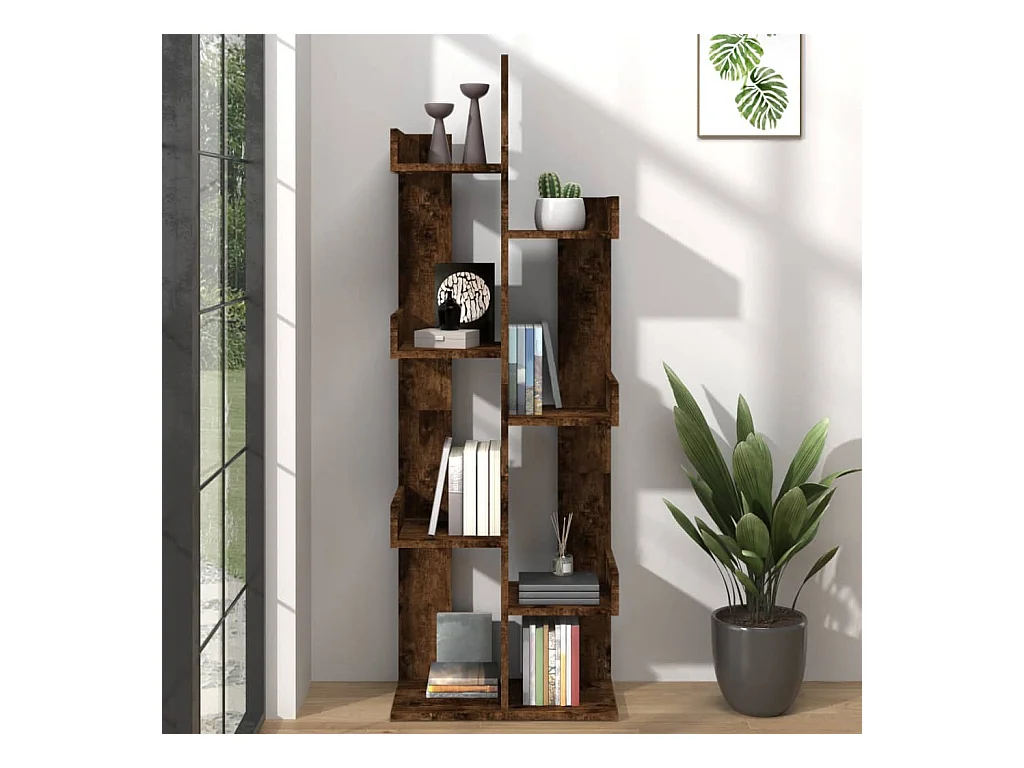 Bibliothèque 48x25,5x140 cm Chêne fumé Bois d'ingénierie OFR23543 BonneVie Meuble