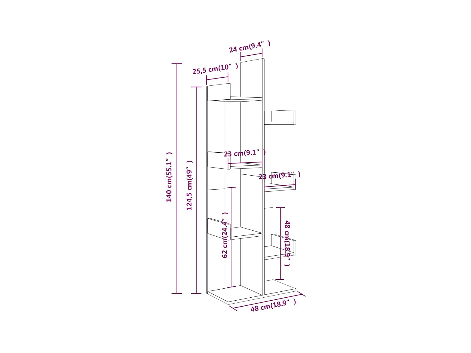 Bibliothèque chêne artisanal 48x25,5x140 cm bois d'ingénierie