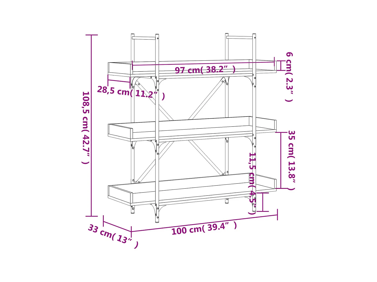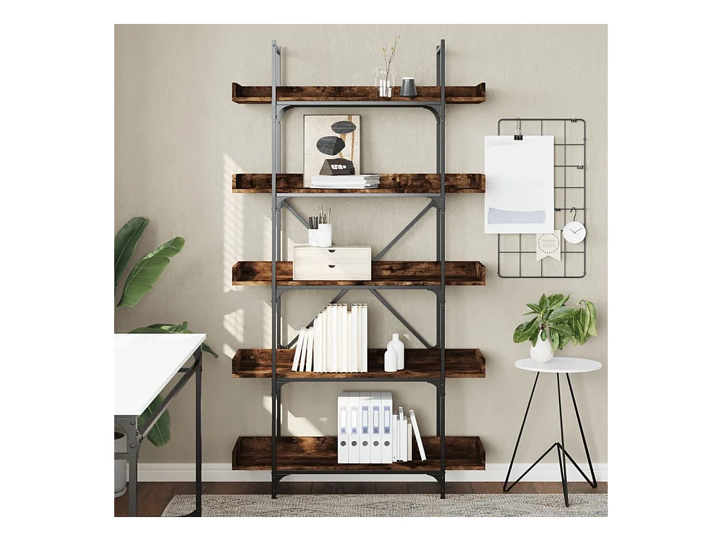 Bibliothèque 5 niveaux chêne fumé 100x33x180,5 cm