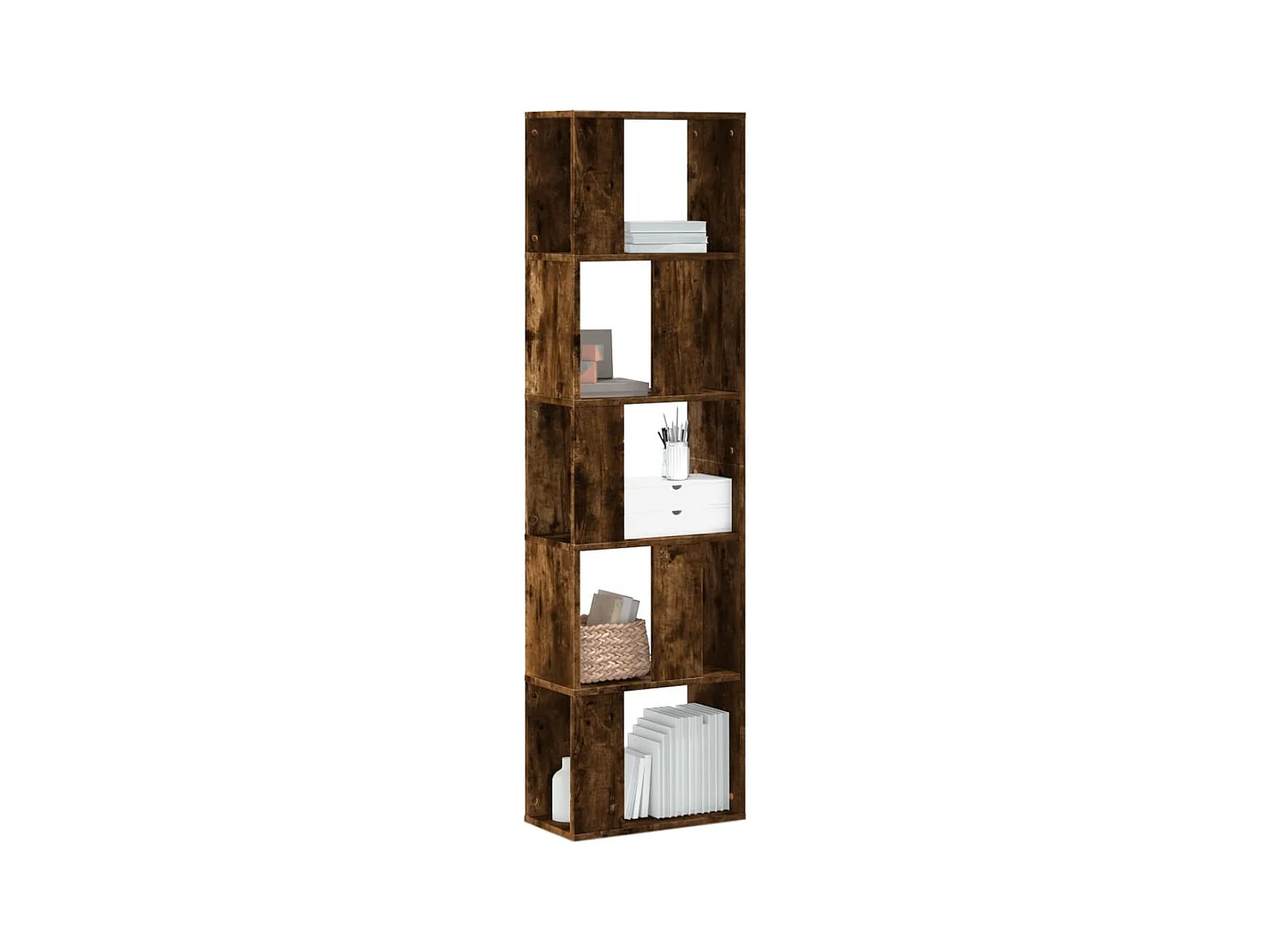 Bibliothèque 5 niveaux chêne fumé bois d'ingénierie