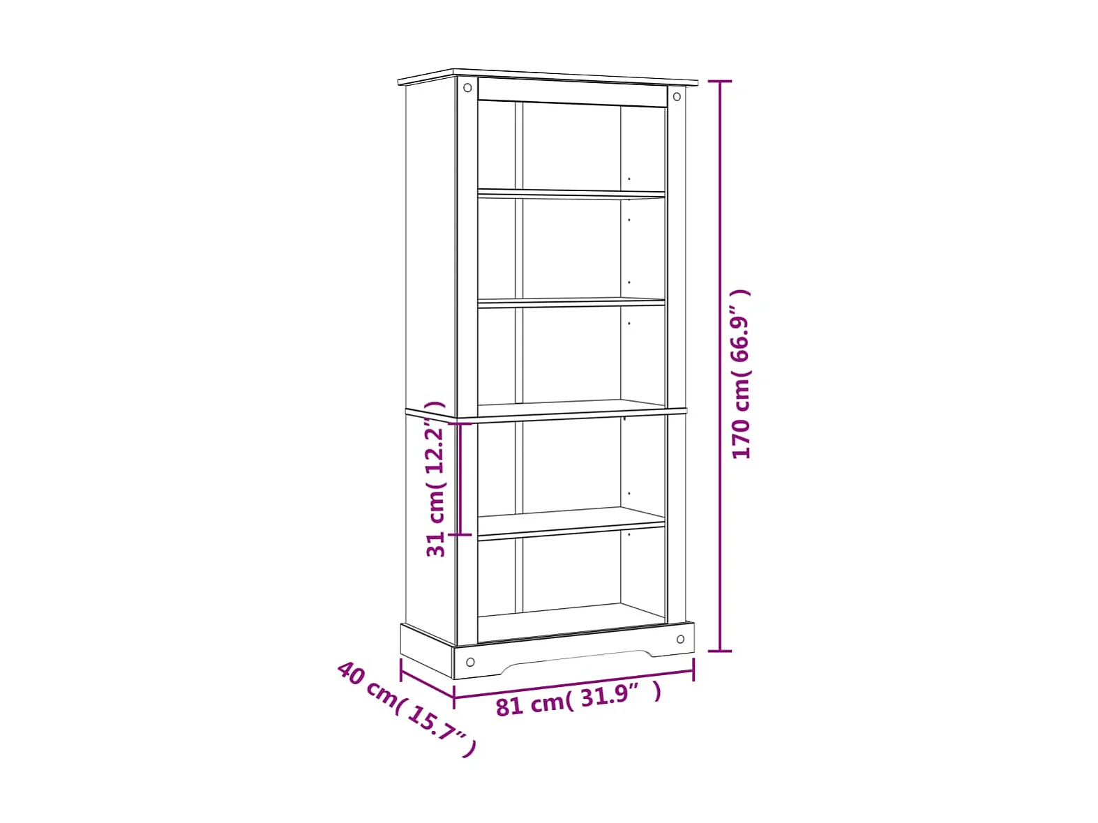 Bibliothèque 5 niveaux Gamme Corona Pin mexicain 81x40x170 cm