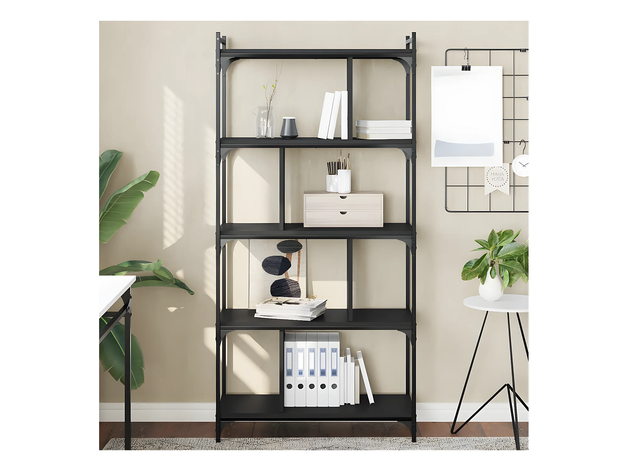 Bibliothèque noir 100x32x170 cm bois d'ingénierie et fer