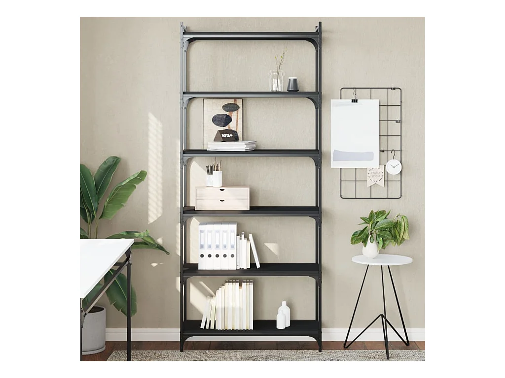 Bibliothèque 6 niveaux noir 80x30x188 cm bois d'ingénierie