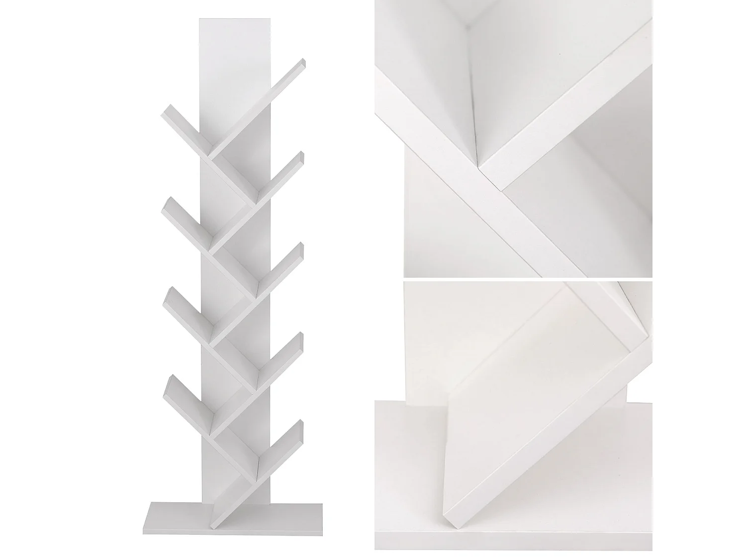 Bibliothèque forme arbre à 8 niveaux, étagère de rangement pour enfants/adultes, blanc