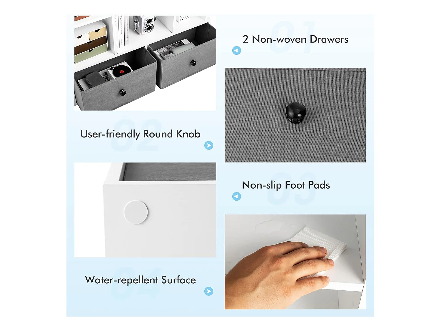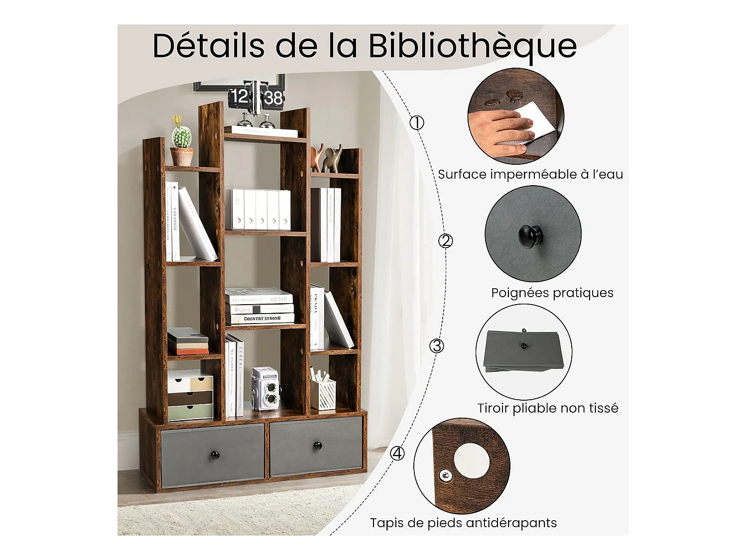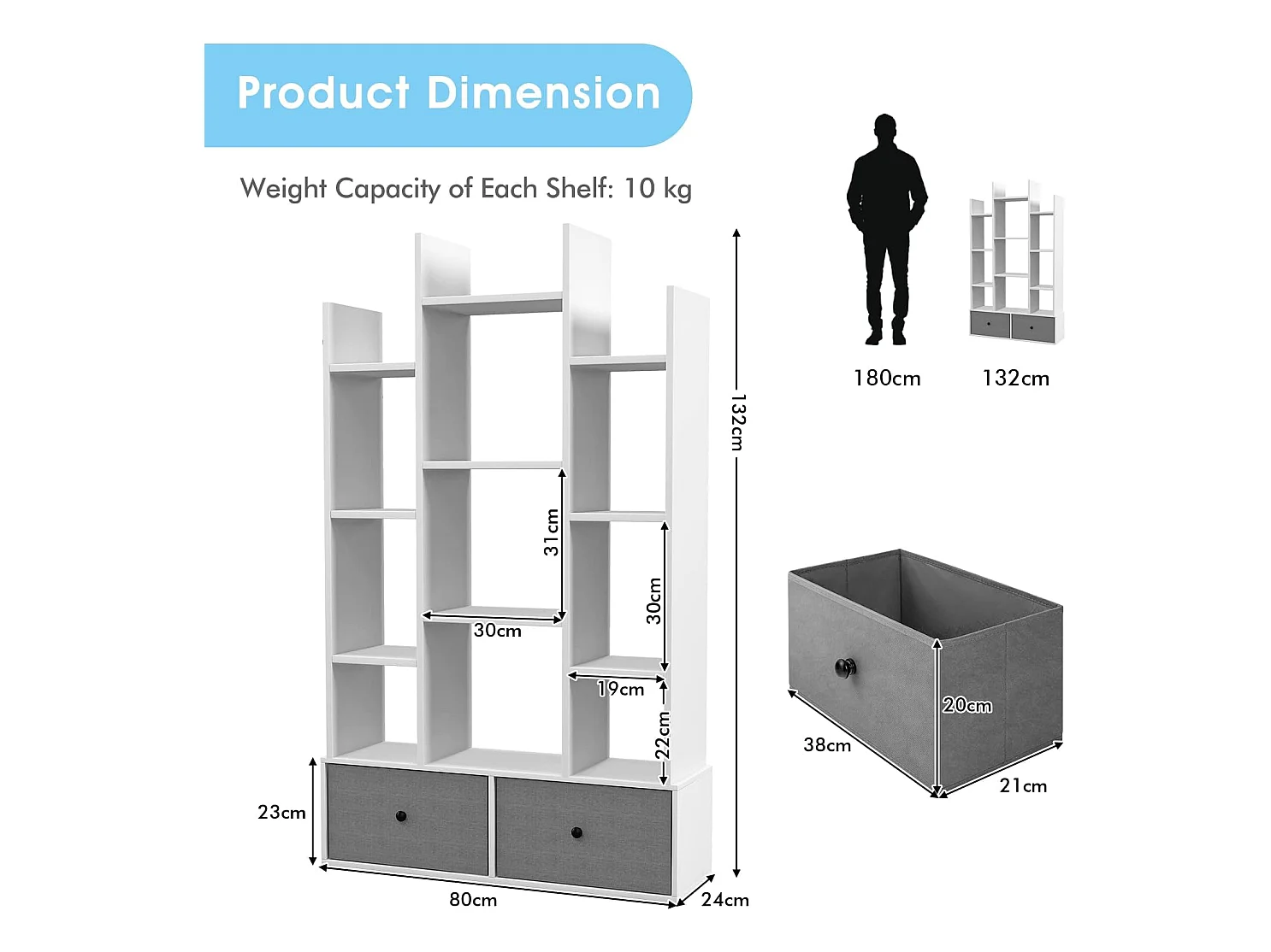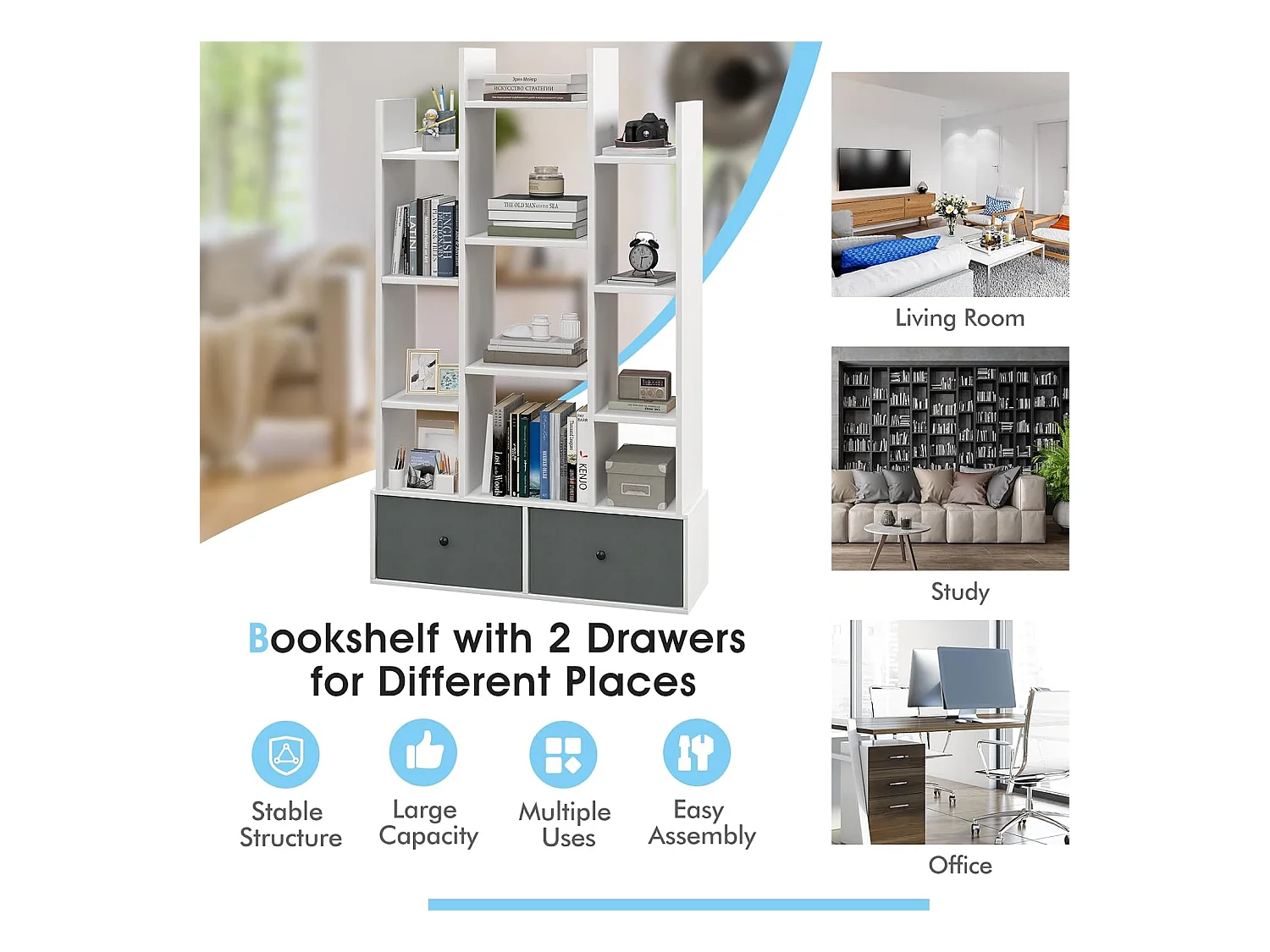 Bibliothèque à 12 niveaux avec 2 tiroir amovible,12 compartiments, 81x24x132cm blanc