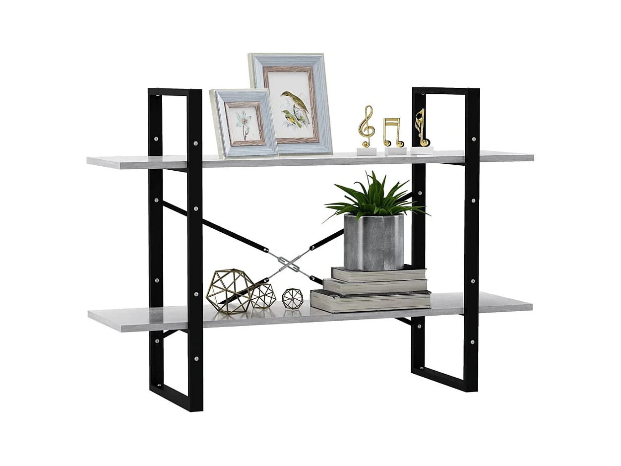 Bibliothèque à 2 niveaux gris béton 100x30x70cm bois ingénierie