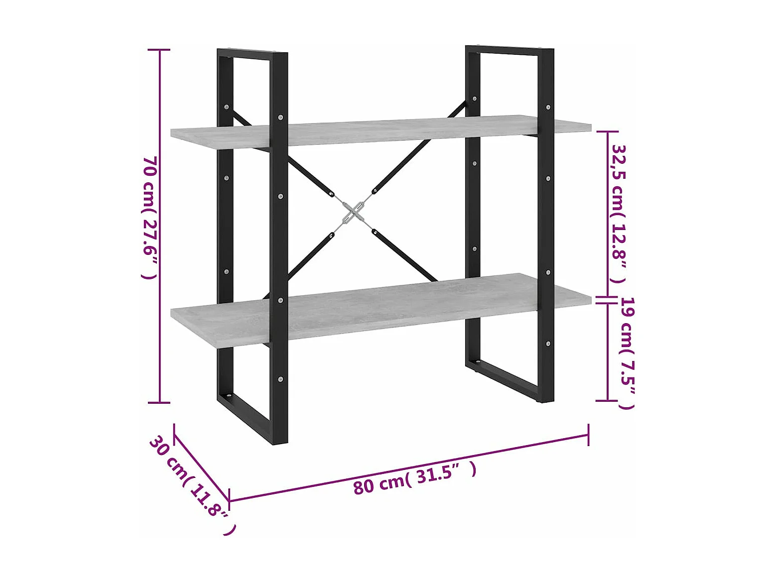 Bibliothèque à 2 niveaux Gris béton 80x30x70 cm Aggloméré