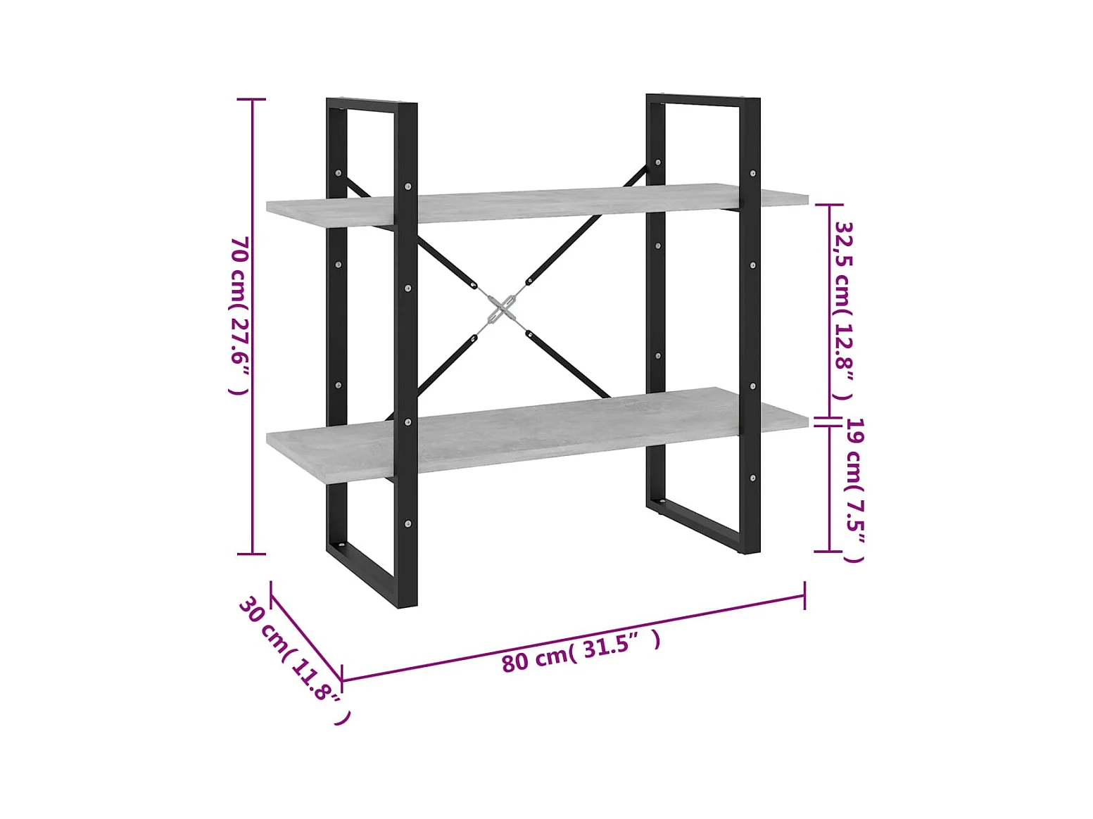 Bibliothèque à 2 niveaux Gris béton 80x30x70 cm bois ingénierie