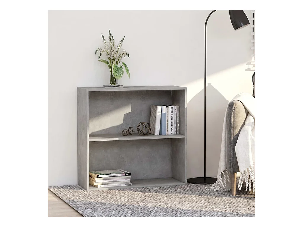 Bibliothèque à 2 niveaux gris béton bois d'ingénierie