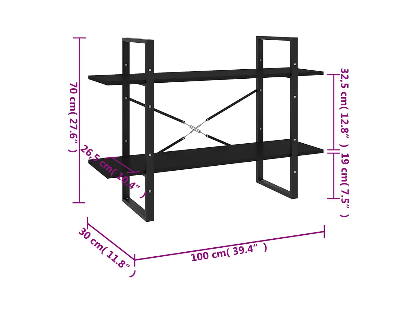 Bibliothèque à 2 niveaux noir 100x30x70 cm bois d'ingénierie
