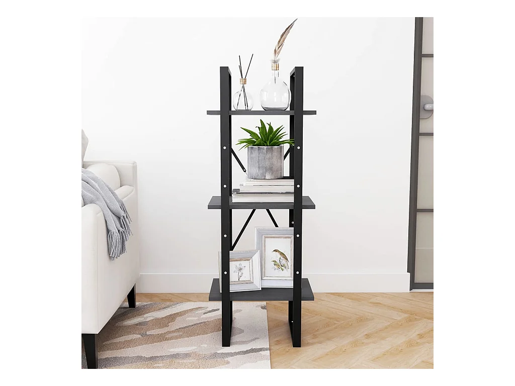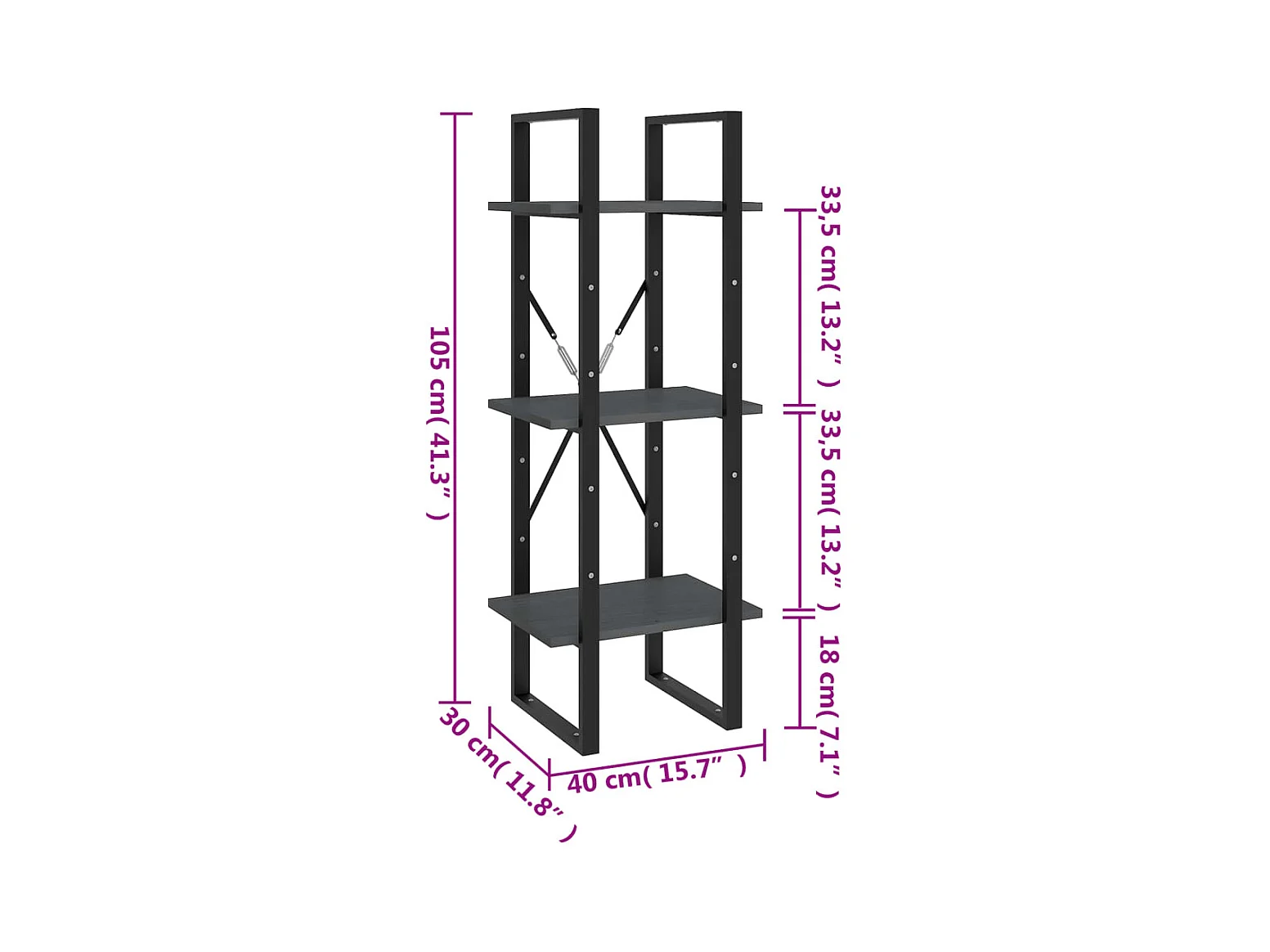 Bibliothèque à 3 niveaux Gris 40x30x105 cm Bois de pin massif
