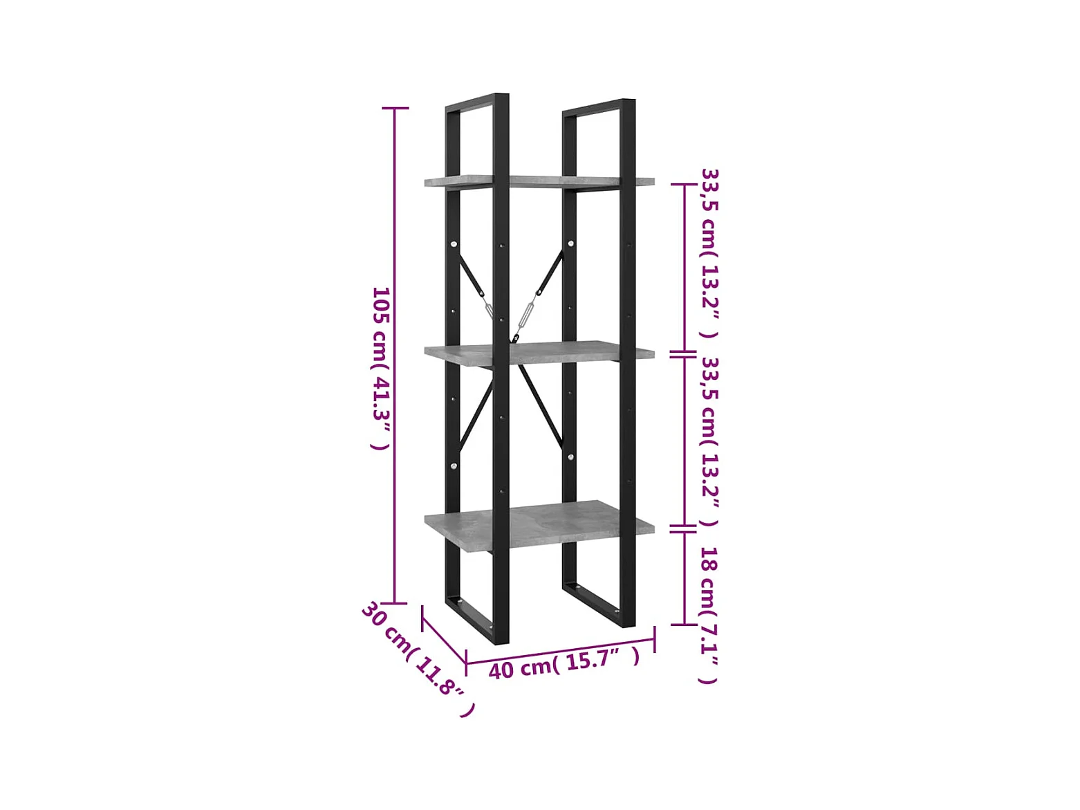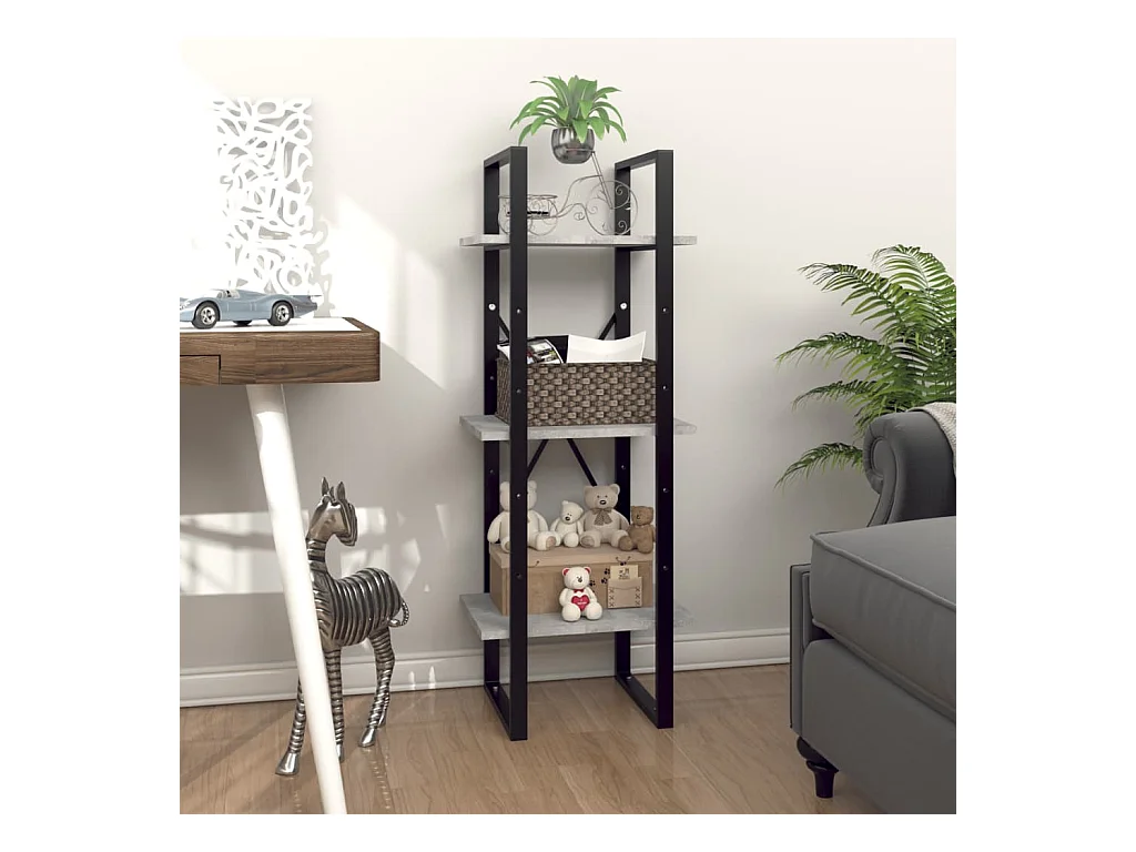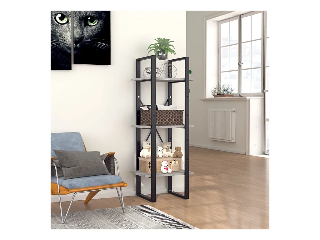Bibliothèque à 3 niveaux gris béton 40x30x105cm bois ingénierie
