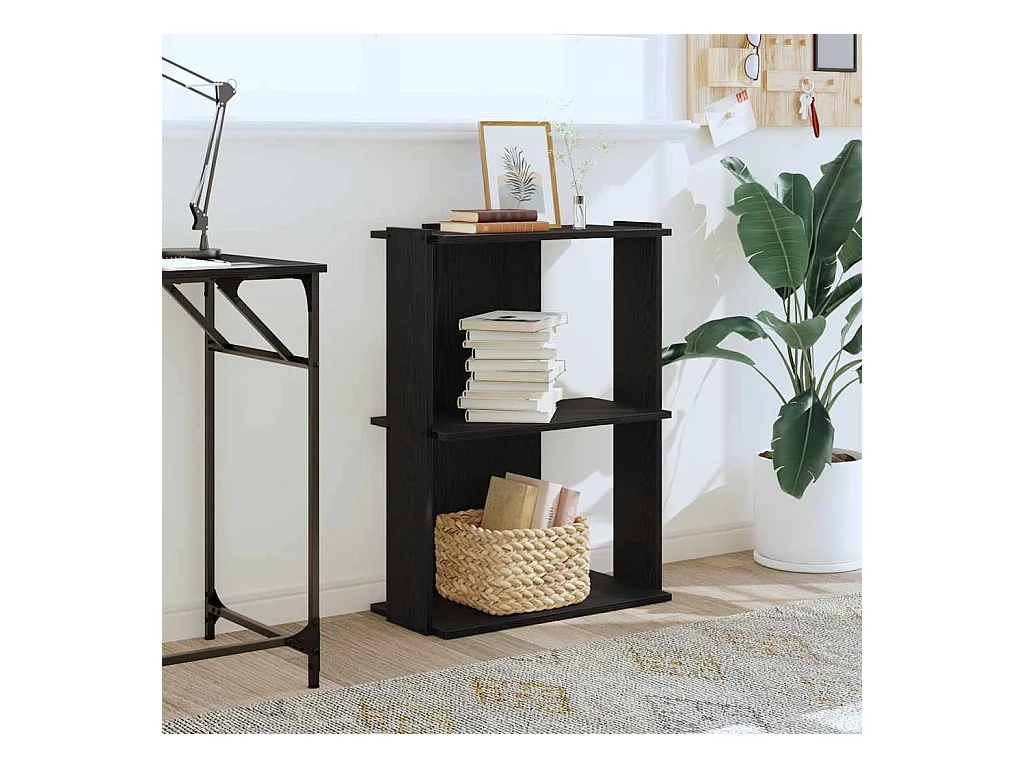 Bibliothèque à 3 niveaux noir 60x30x60 cm bois d'ingénierie