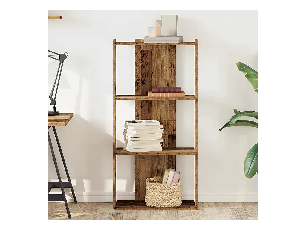 Bibliothèque à 3 niveaux vieux bois 60x30x120cm bois ingénierie