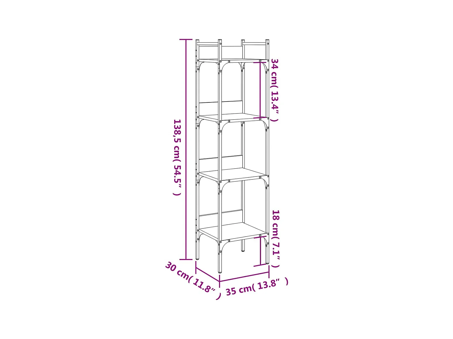 Bibliothèque à 4 niveaux chêne 35x30x138,5 cm bois d'ingénierie