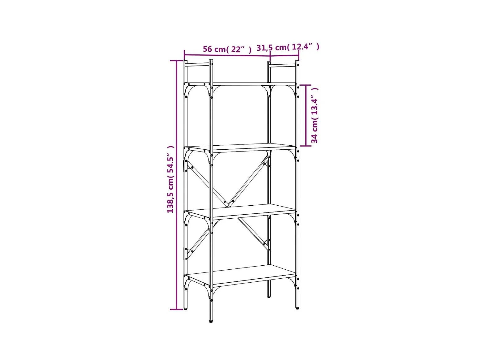 Bibliothèque à 4 niveaux chêne fumé 56x31,5x138,5 cm